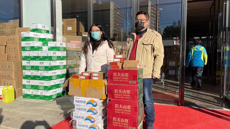 天通苑北街道对辖区内给予帮助的企业表达了感谢,并第一时间将物资下发到一线防疫人员手中。