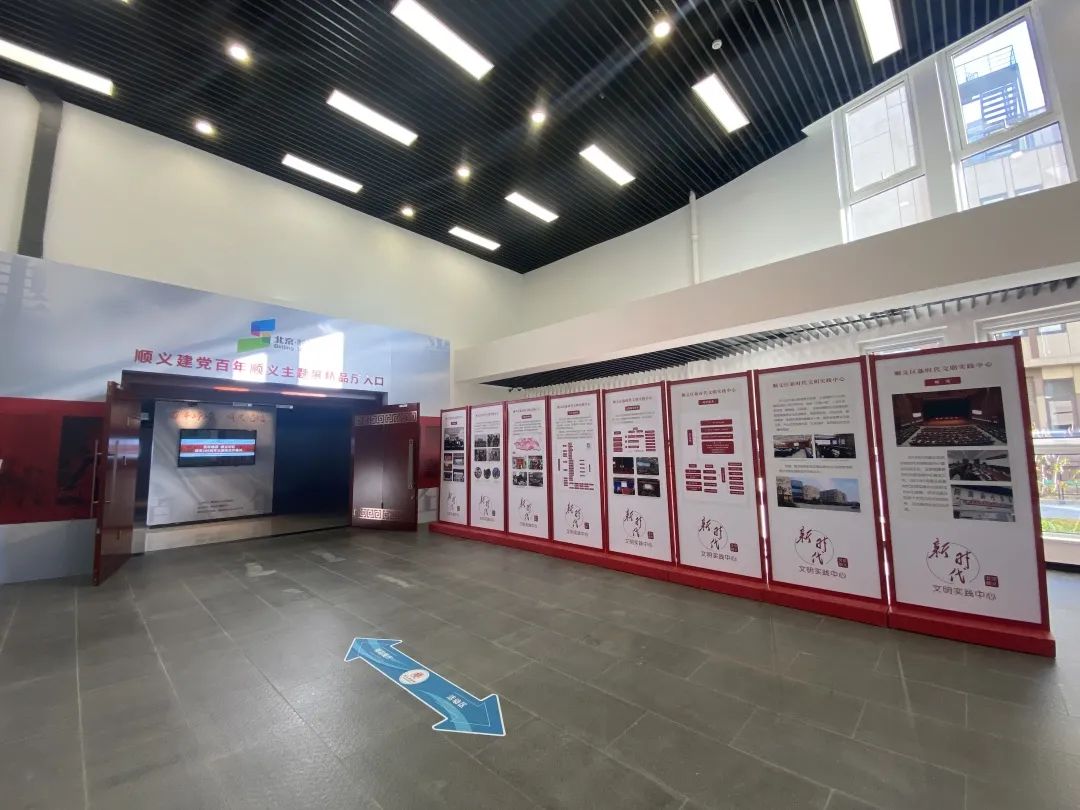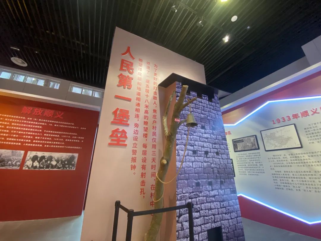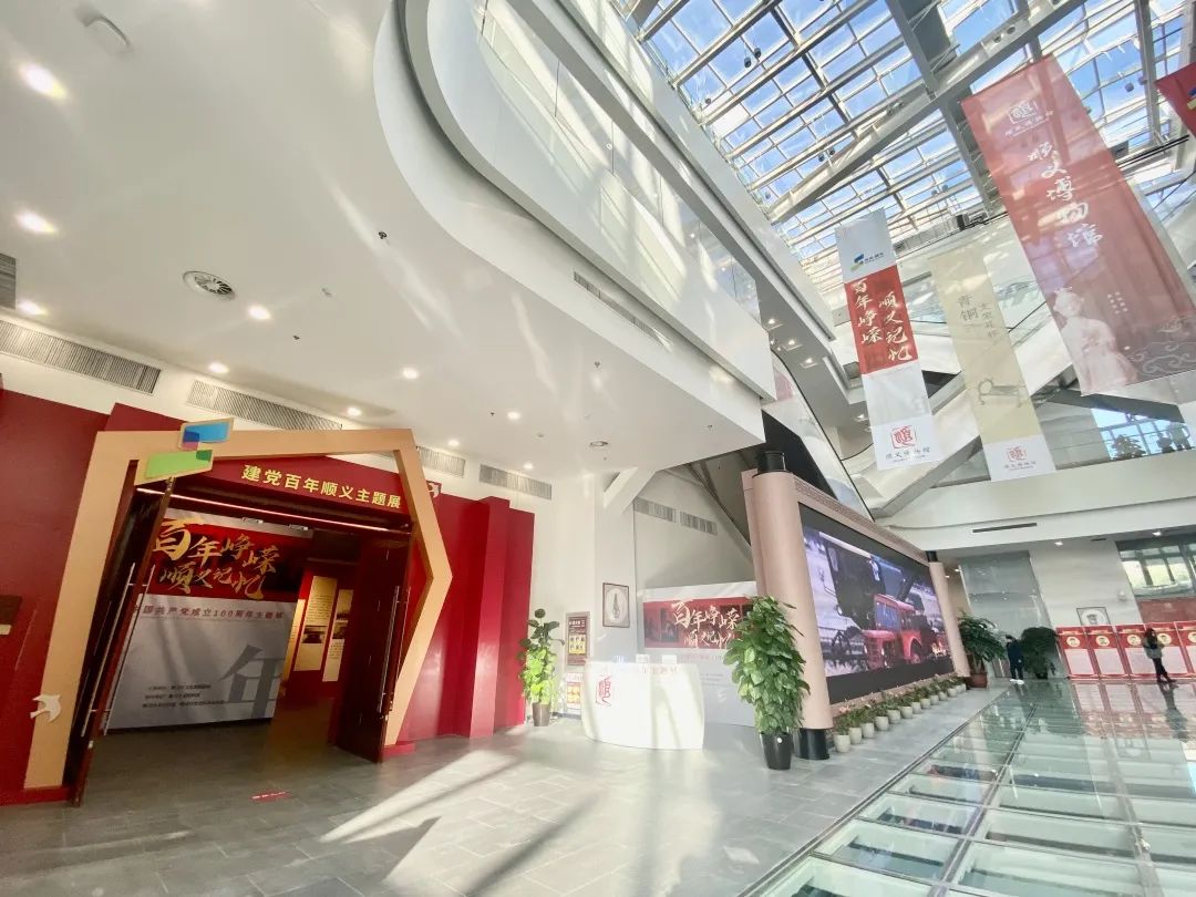 一楼临展厅现在展示的是“百年峥嵘·顺义记忆”——建党100周年专题展。展览总面积约320平方米,分为“开辟新天地”“建设新家园”“开启新征程”“奋进新时代”四个篇章,通过珍贵的历史图片、音频、文字等,带领市民重温顺义党组织和广大共产党员挺立潮头的伟大历史,赓续精神血脉,传承红色基因,展示顺义历史人物鲜活事迹,展望顺义奋进新时代的美好前景。