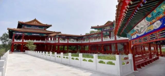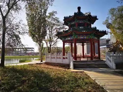群明湖旁的仿古建筑群由牌楼、甬道、长廊、观景楼、石拱桥等景点建筑,为这处水质清澈的人工湖更增了一处优美可看景观。