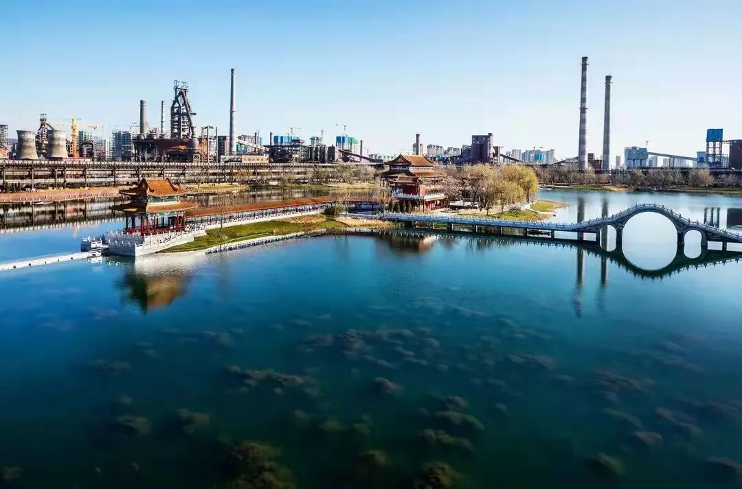1992年,首钢将厂区内的山景、水景、园林进行了精心营造,形成“半厂山水锦花池,十里钢城碧云天”的美景。