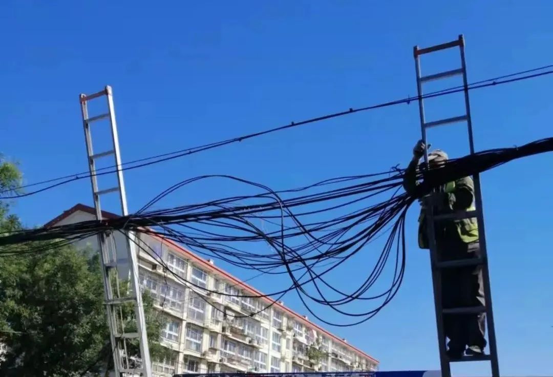 针对此情况,旺泉街道高度重视,会同歌华有线、电信、移动等线缆产权单位召开老旧小区架空线缆整治联席会,共同商讨解决方案。在各产权单位密切配合下,旺泉街道聘请专业公司采取“清理、捋直、捆绑”等多种措施,对“空中飞线”进行整治。