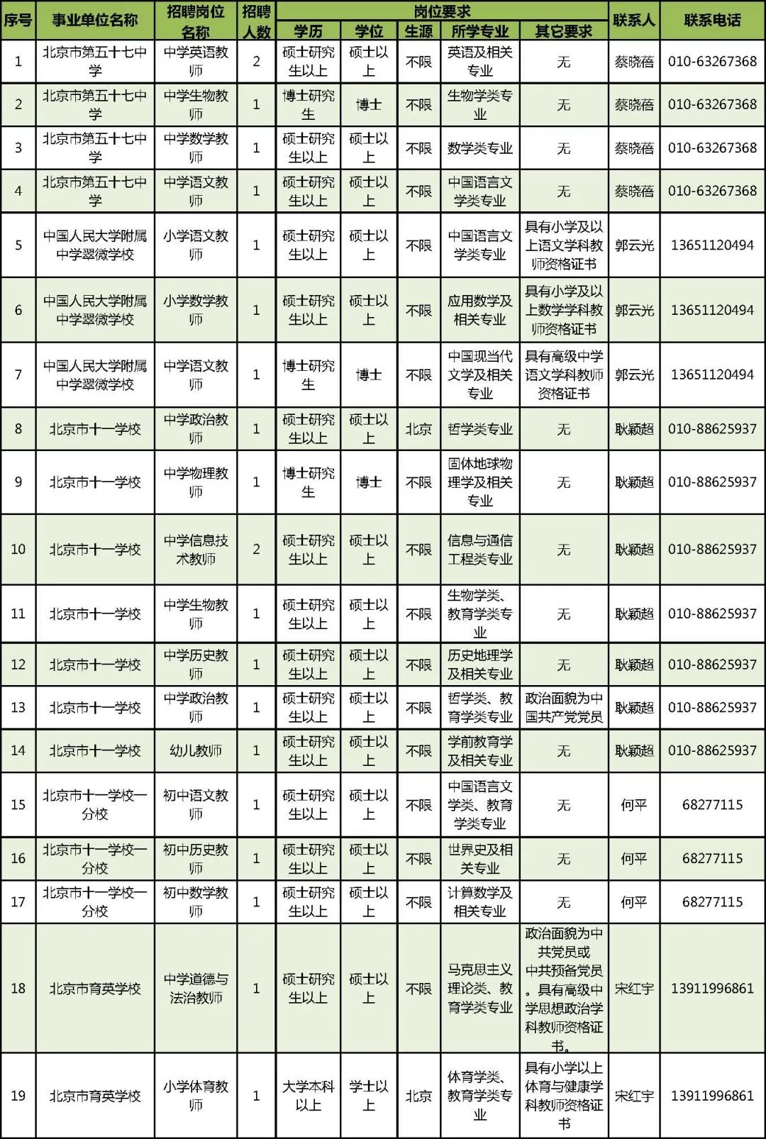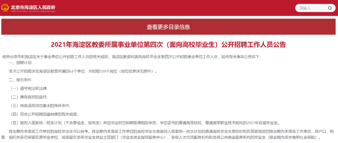 附件:《2021年海淀区教委所属事业单位第四次(面向高校毕业生)公开招聘工作人员岗位需求表》