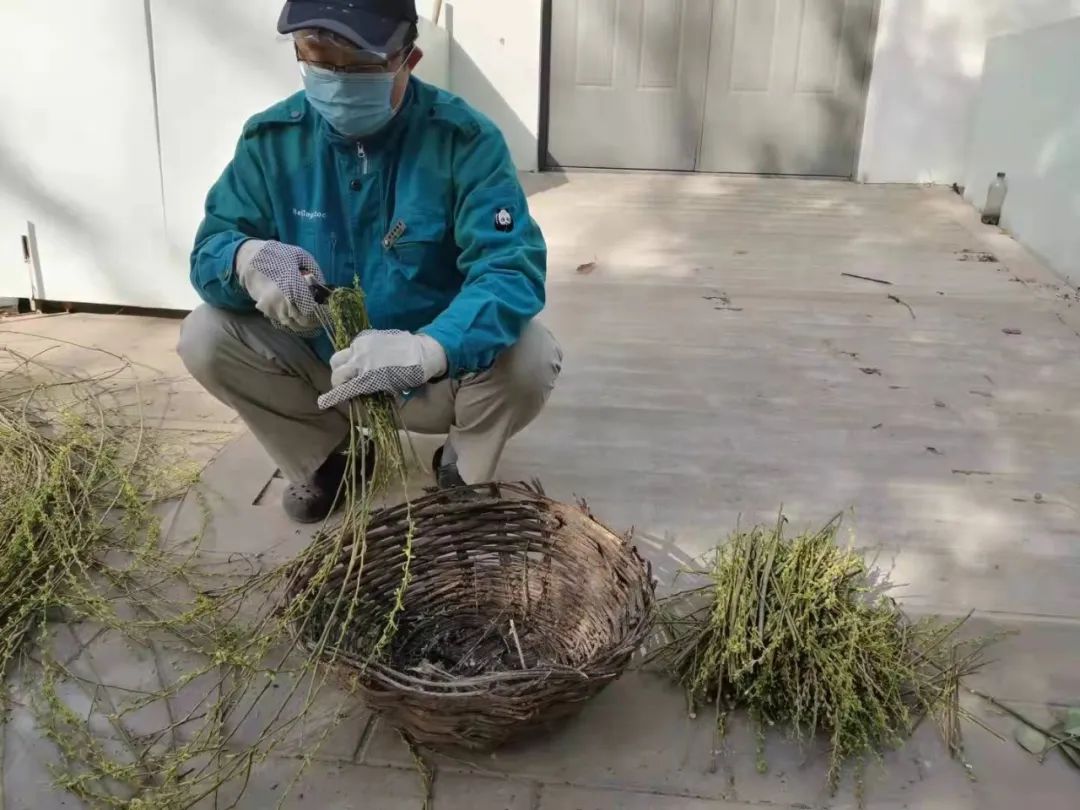 不仅是在吃上潜心研究,在“住”上也是精心准备。每年3月都是朱鹮的发情期,每到这个时候毛宇会带领团队提前做人工巢。他们到园区收集柳树枝编巢,柳树枝的选取也十分讲究,不能粗也不能太细,选取直径大约在3毫米左右,然后截取成25公分长,编好的人工巢被捆绑在室外运动场供朱鹮选择,同时还会准备更多的柳枝、干草分散在运动场各个周围,“它们会去叼这些树枝、干草装饰自己的窝,有的筑巢很好,能看到窝一层一层不一样,树枝、树叶、干草、羽毛等,越到中间越柔软,这样利于后期自然繁殖孵化。”毛宇说道。
