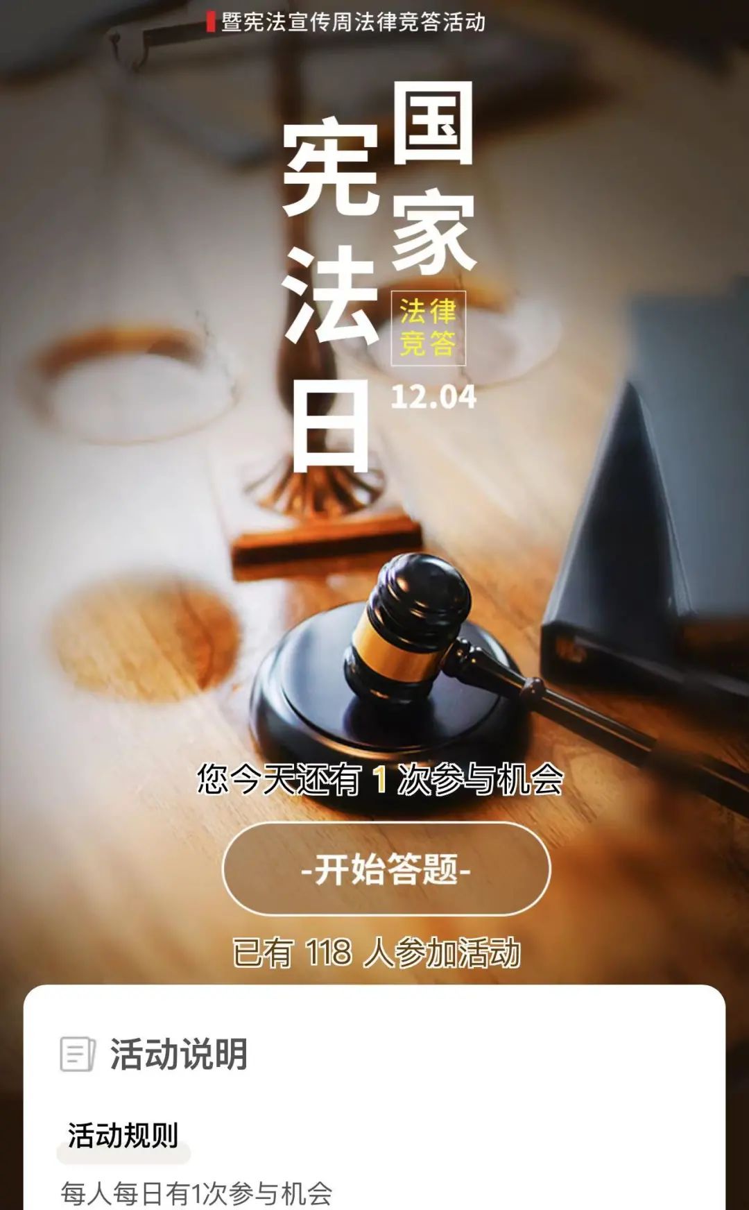 看丹街道党群办、看丹街道司法所联合在微信公众号推出了宪法周有奖竞答活动,通过寓教于乐的方式号召辖区居民积极参与法律竞答活动,本次活动奖品除了法治宣传品外,还为每名获奖者发放《宪法》《民法典》各一本,从而掀起了又一轮学习《宪法》《民法典》的热潮。