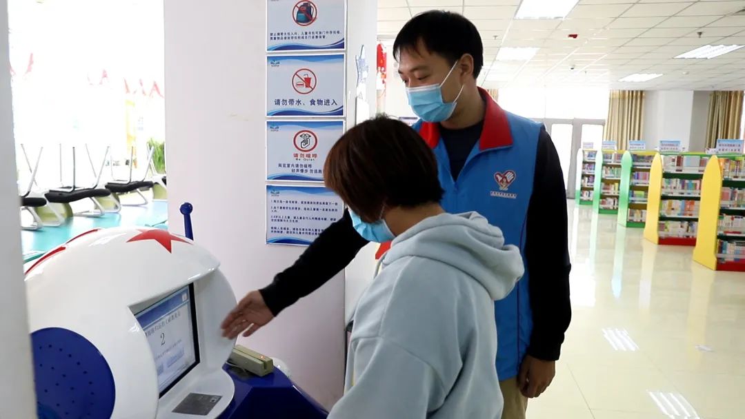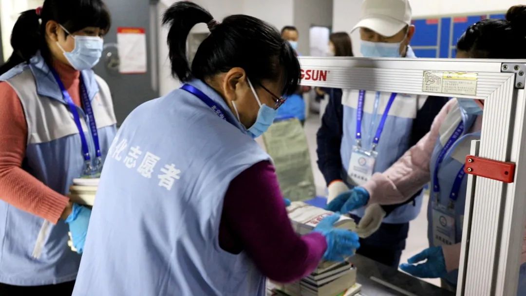 在密云区图书馆地下一层的藏书库里,53岁的靳丽萍和他的队友们正在进行图书转库工作,分类、打捆、登记,每项步骤都有条不紊。自2018年退休后,靳丽萍就加入区图书馆志愿服务分队,几乎每天都来图书馆报到,图书整理、文明引导等各个岗位上都可以看到她的身影,在她的影响下,一家人都加入了图书馆的志愿服务队。
