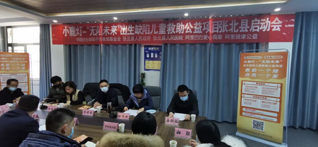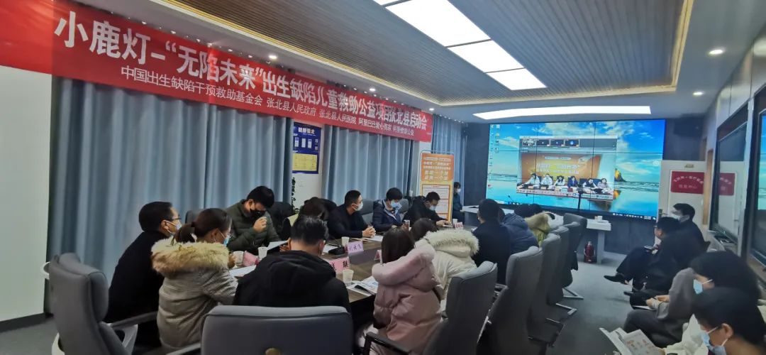2021年12月1日在张北县卫健局和阿里健康绿地中心召开了由中国出生缺陷干预救助基金会、阿里巴巴公益、阿里健康公益联合发起的小鹿灯-“无陷未来”出生缺陷儿童救助公益项目启动视频会,出席此次启动会的有省妇幼处副处长李晓霞、阿里健康资深副总裁马立、张北县委副书记蔡惊雷、政府副县长张桂利、阿里张北乡村振兴特派员刘云飞、卫健局、民政局、乡村振兴局等相关负责同志。