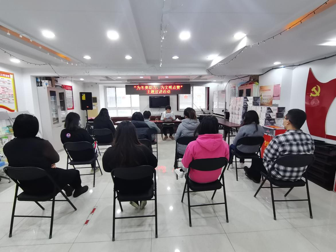 成寿寺社区党委书记刘冰冰组织社区工作人员及部分居民代表,在成寿寺社区新时代文明实践站开展了冬奥主题宣讲活动。本次活动中,刘冰冰为大家讲述了中国与冬奥项目的历史渊源以及从冬奥申办经历及筹备进展,阐述了“绿色、共享、开放、廉洁”的办奥理念以及冬奥会的会徽“冬梦”和吉祥物“冰墩墩”的内在涵义,带领大家共同聆听了冬奥会主题口号歌曲《一起向未来》。通过这次活动,引导社区居民们走近冬奥会,了解冰雪运动,感受顽强拼搏永不放弃的竞技精神,激发了大家积极参与冰雪运动的热情,鼓励居民朋友们共同营造冰雪运动、冰雪文化进社区的良好氛围。