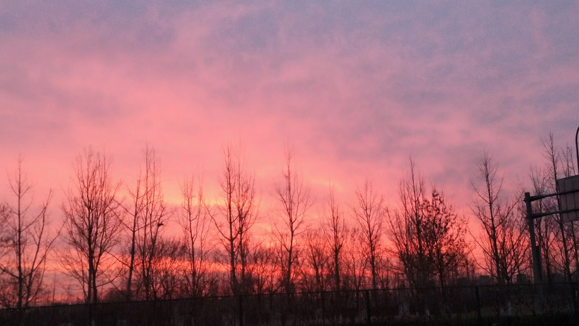 王佐青龙湖区域朝霞与晚霞辉映成趣