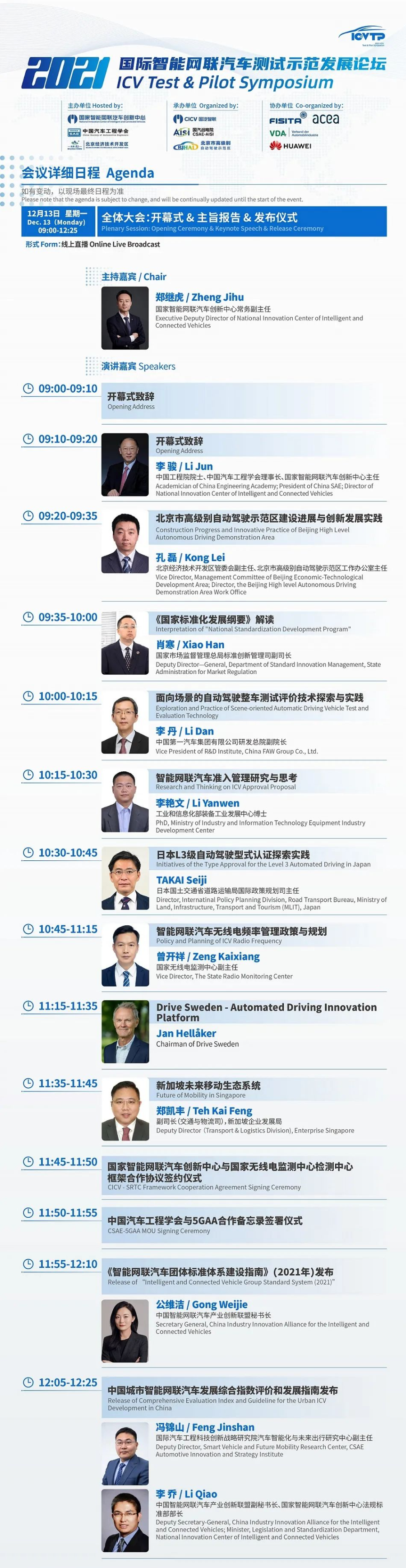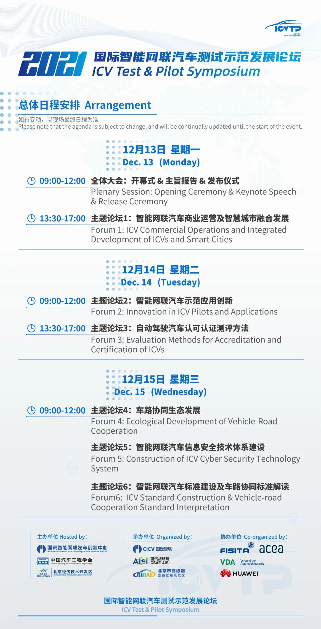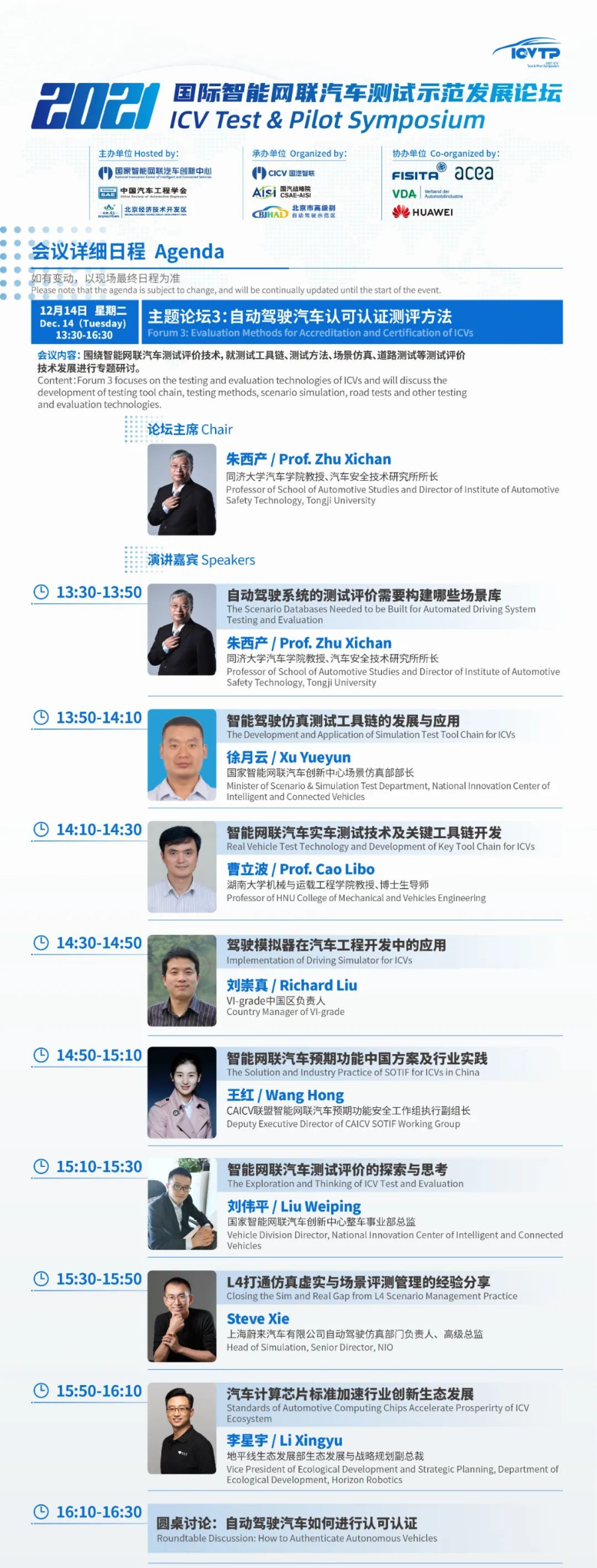 倒计时1天!最新日程来袭,2021国际智能网联汽车测试示范发展论坛(ICVTP2021)与您相约云端,不见不散。