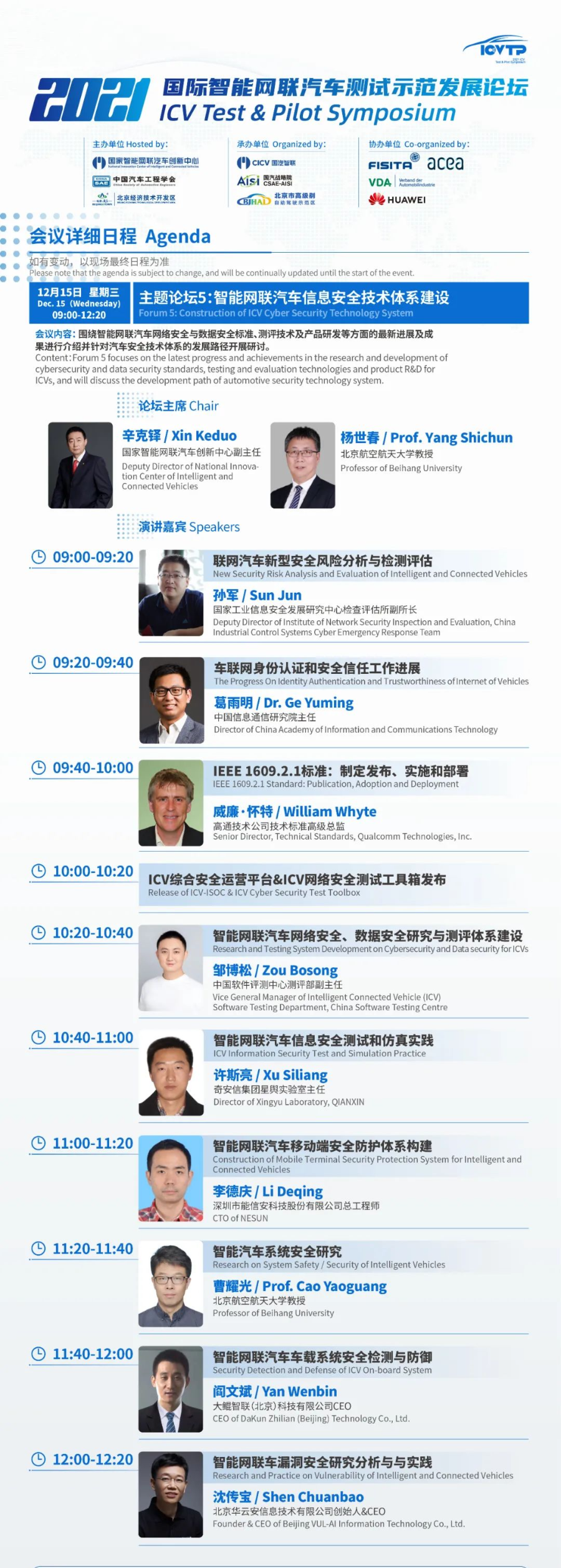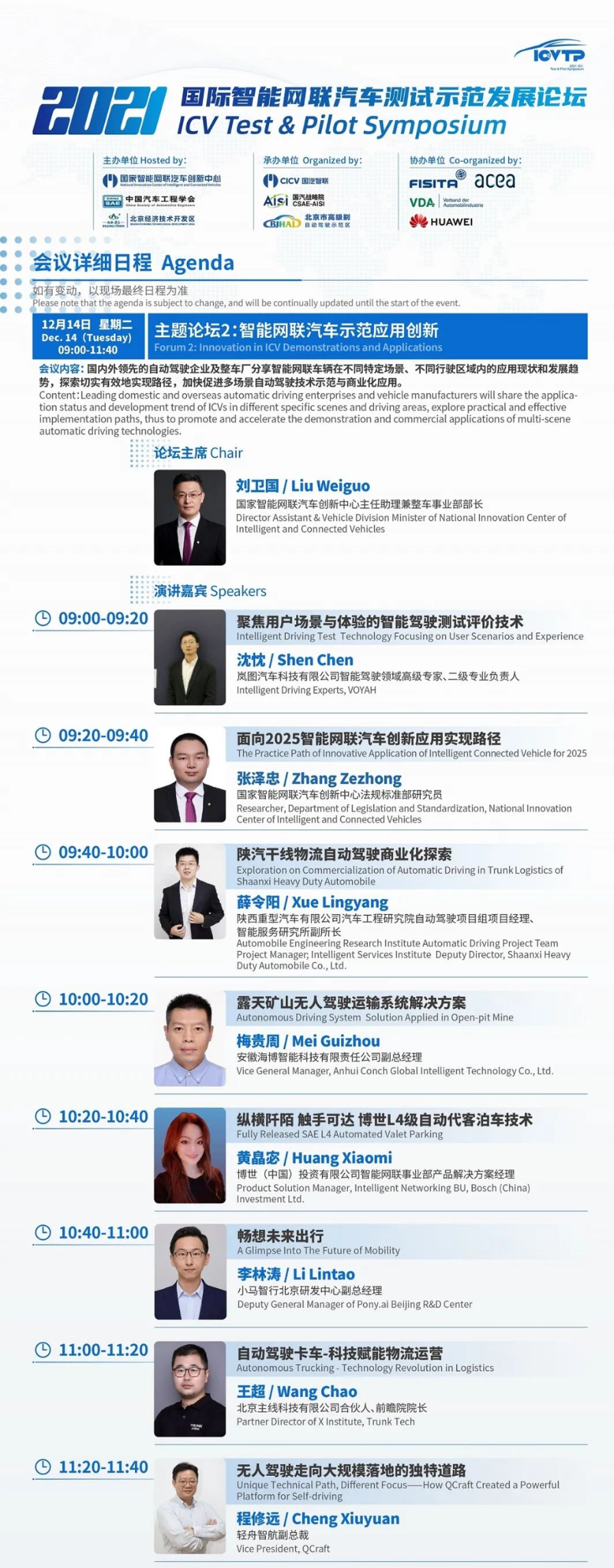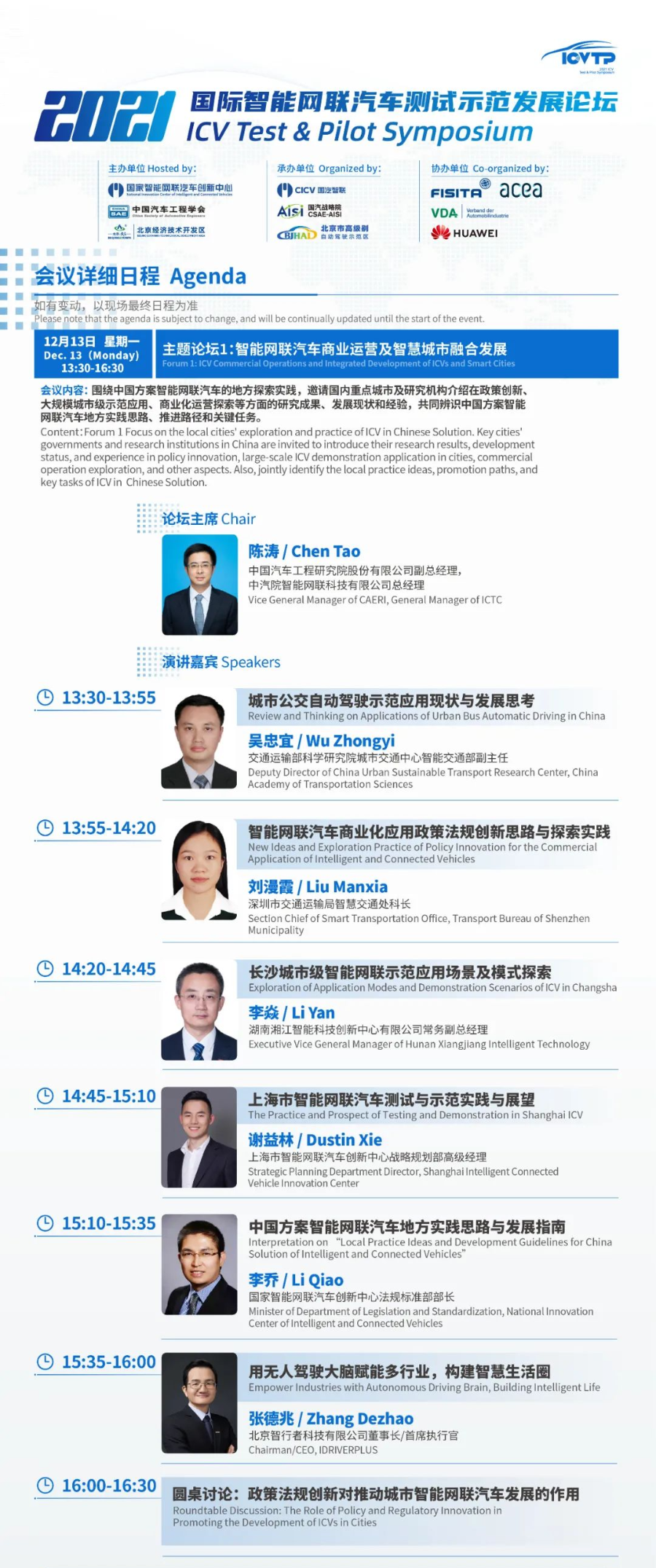 倒计时1天!最新日程来袭,2021国际智能网联汽车测试示范发展论坛(ICVTP2021)与您相约云端,不见不散。