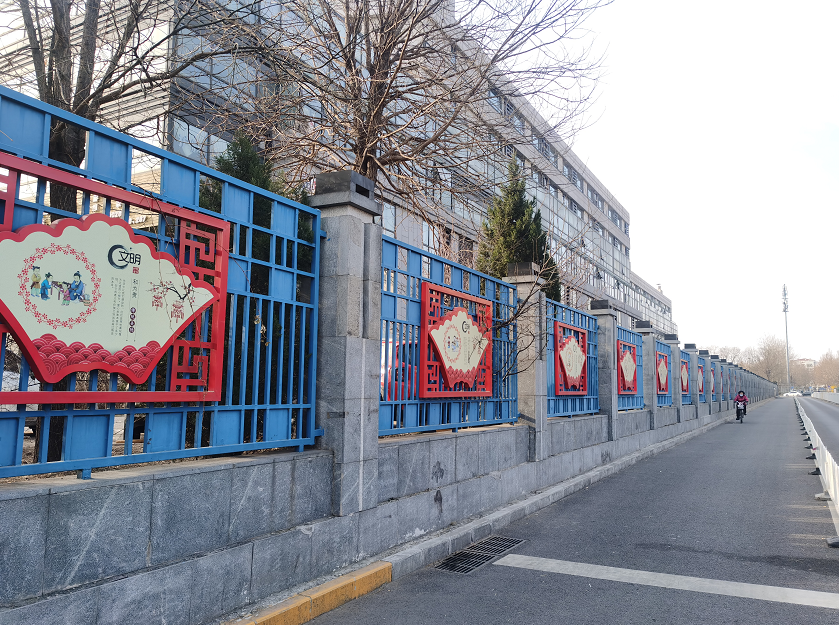 走进云趣园三区南侧道路,机动车道、非机动车道清晰明确,最靓丽的是路边围栏上社会主义核心价值观文化长廊,“富强、民主、文明、和谐……”一词一框,红、蓝相映,精致生动。