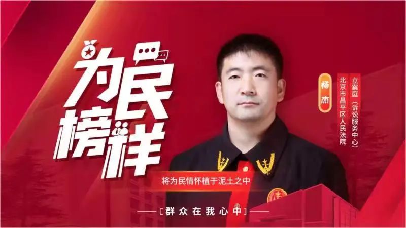 今天,与您分享为民榜样昌平法院立案庭(诉讼服务中心)副庭长杨杰法官的事迹。