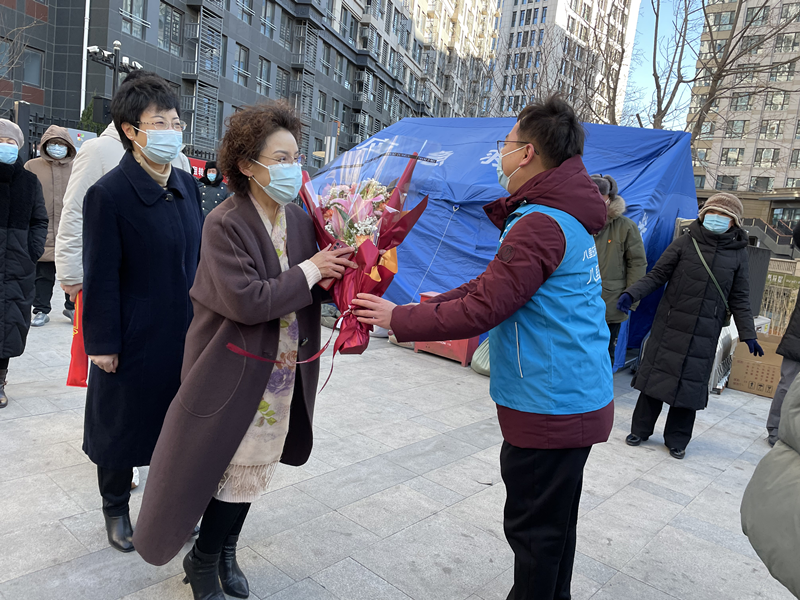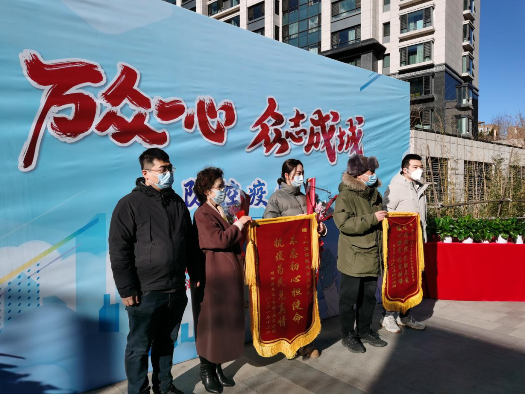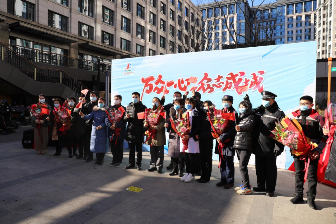为庆祝琨御府东区顺利解封,并感谢广大居民和工作人员的配合与支持,八里庄街道为居民代表、社区干部、物业代表、驻区单位、后勤保障等人员献上鲜花表达感谢。