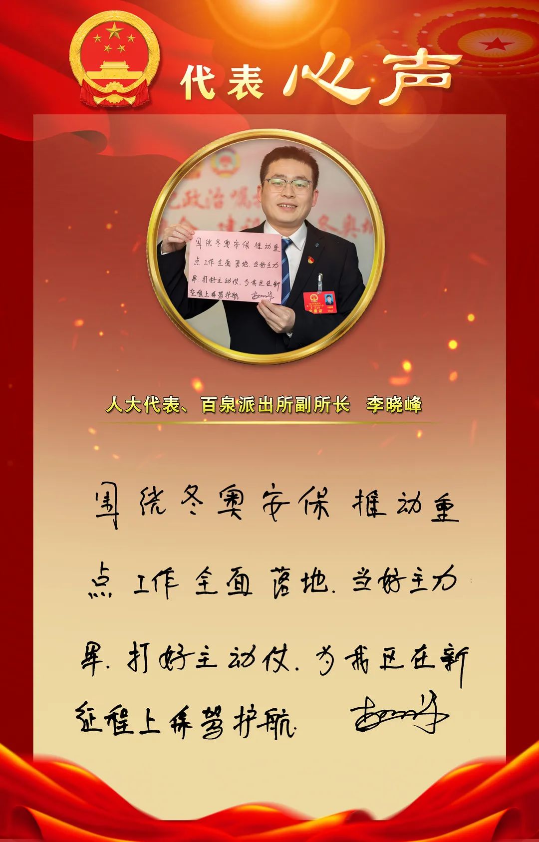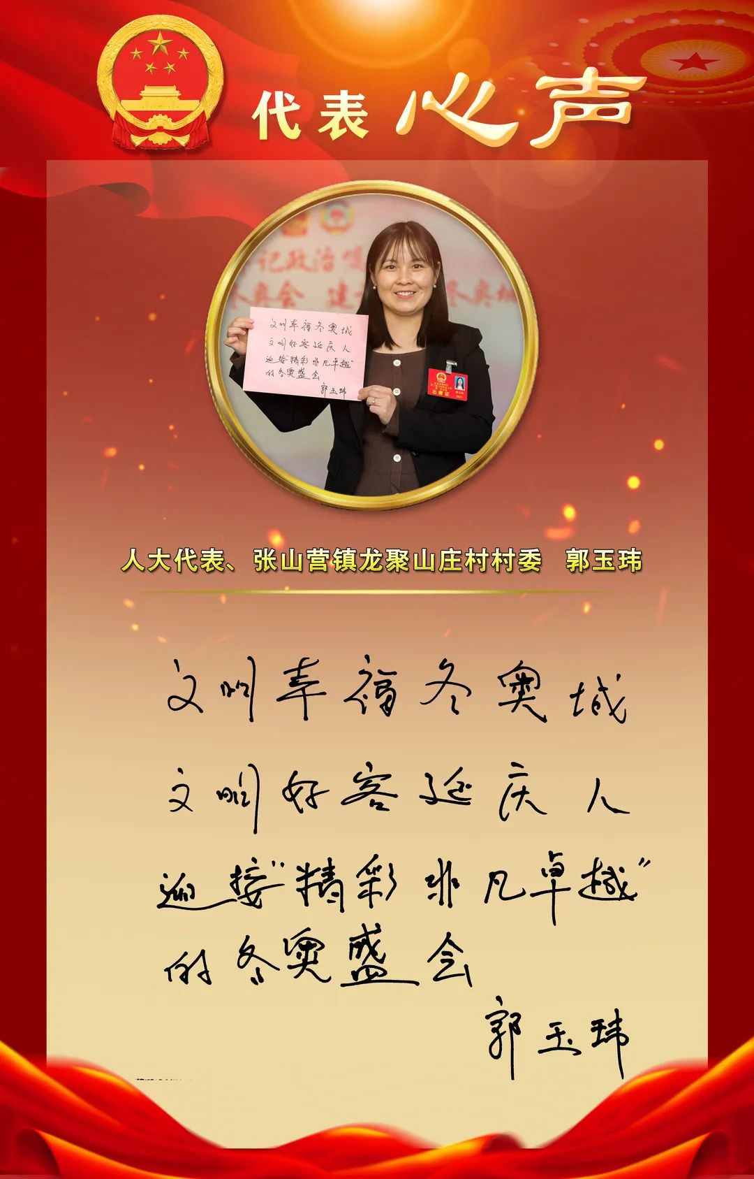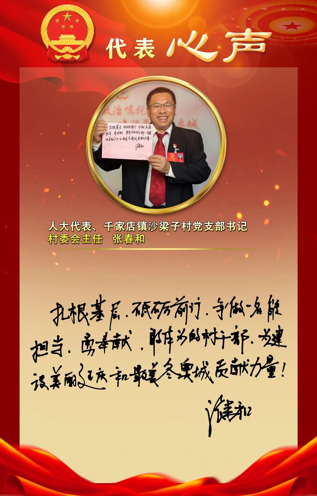 12月15日,北京市延庆区第三届人民代表大会第一次会议隆重开幕,与会人大代表们在大会中认真听取了《政府工作报告》,大家纷纷结合自己的工作实际,就如何做好今后的工作,表达心声并手写寄语。