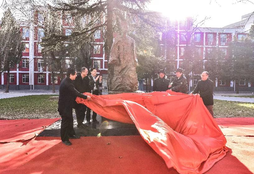 在和煦的阳光下,伴着微风,刘利校长、吴为山馆长、周令飞院长、董炳月会长、魏晖副书记、黄益方副校长共同为雕像揭幕。