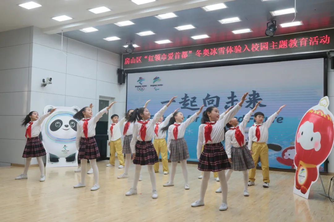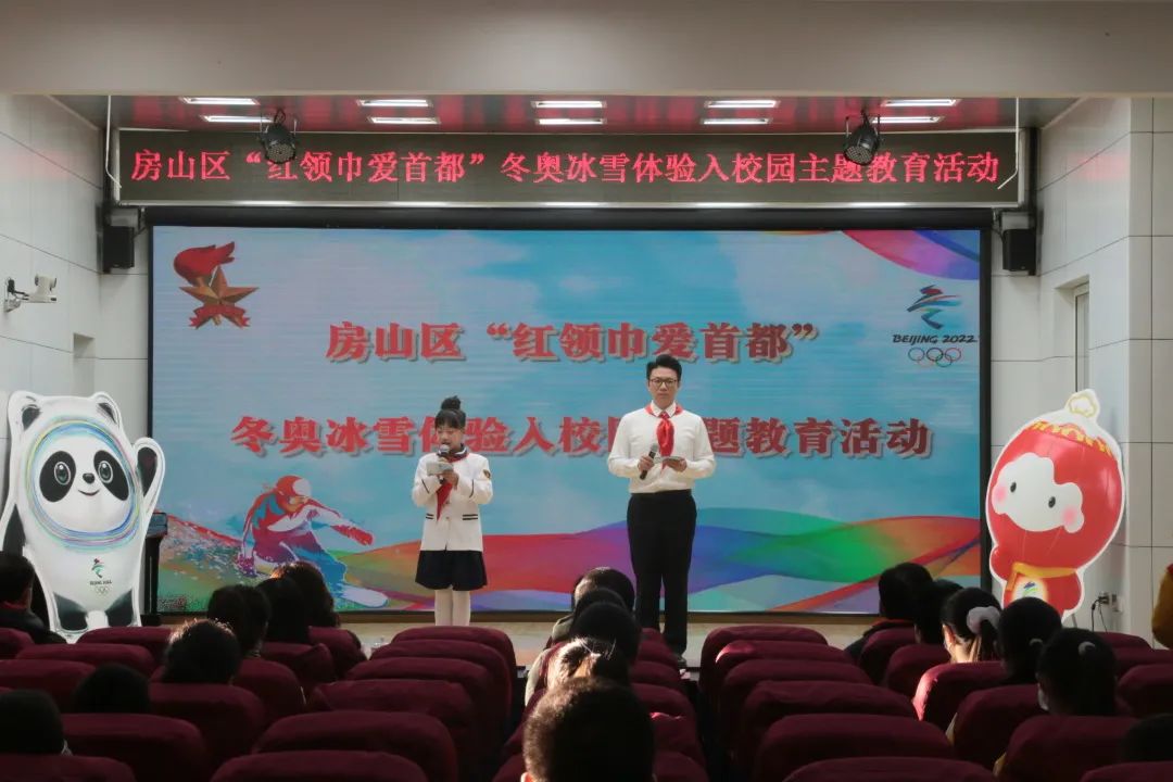 活动中,窦店中心校的队员们向参加活动的来宾介绍了我区中小学开展的“同上一节冬奥课”、“我为冬奥助力”体育竞赛、“我的冬奥梦”绘画比赛等丰富多彩的校园冬奥主题系列活动。
