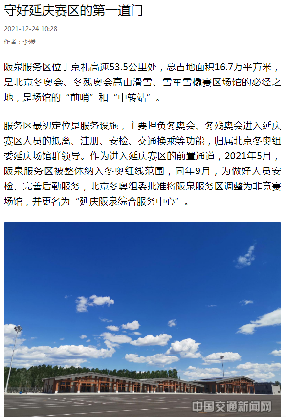 首发集团守好冬奥延庆赛区第一道门