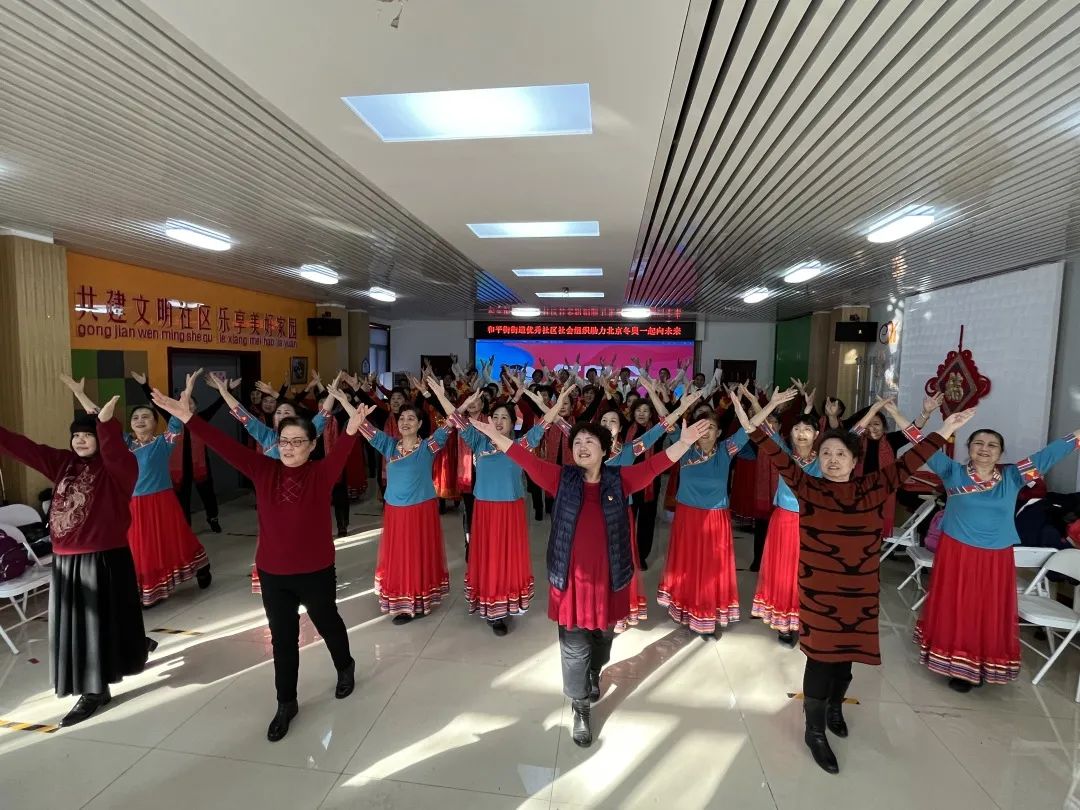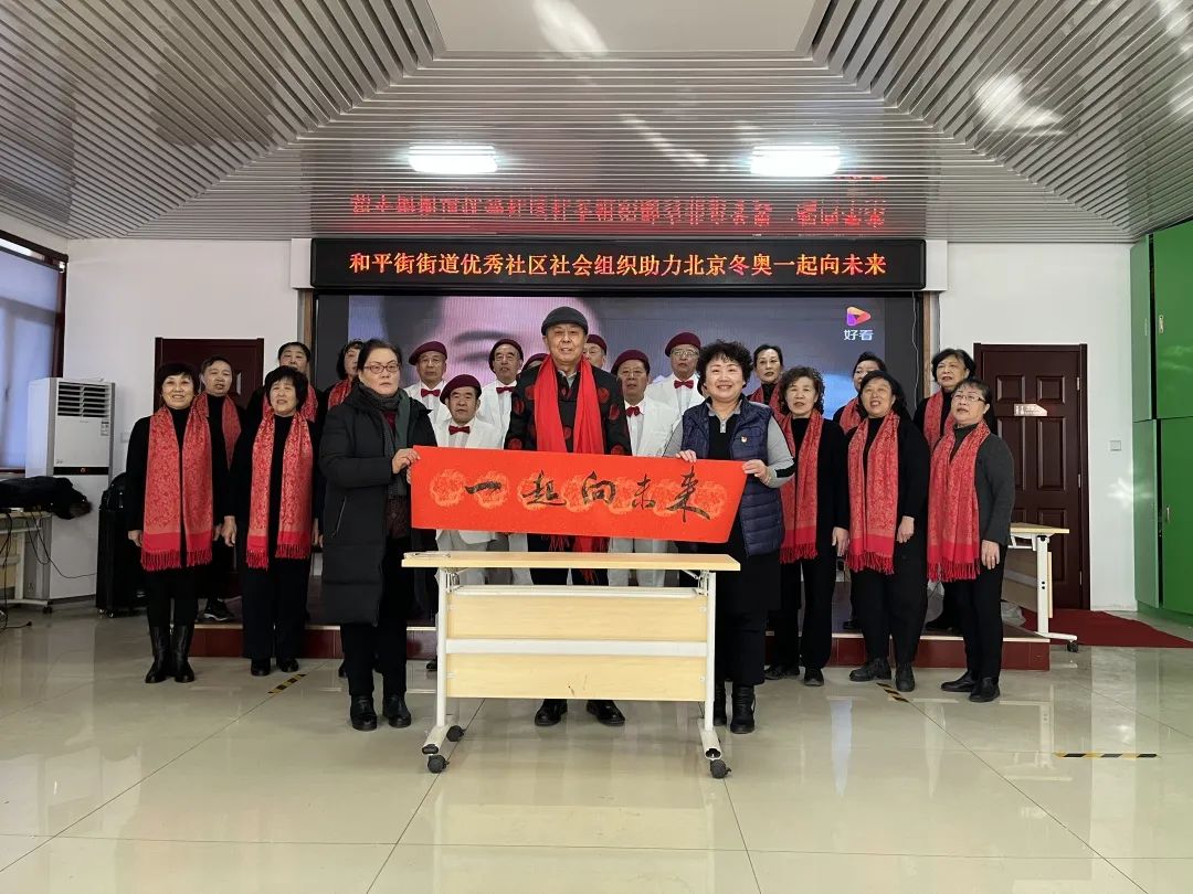 “我们都需要爱,大家把手都牵起来……”伴随着2022年北京冬奥会主题曲《一起向未来》的欢快旋律,最后,街道70余名优秀社区社会组织成员合着节拍,用嘹亮的歌声和动感的舞姿,唱出了自信,跳出了热情,完美诠释了和平街人对2022年北京冬奥会开幕的热盼与期待。