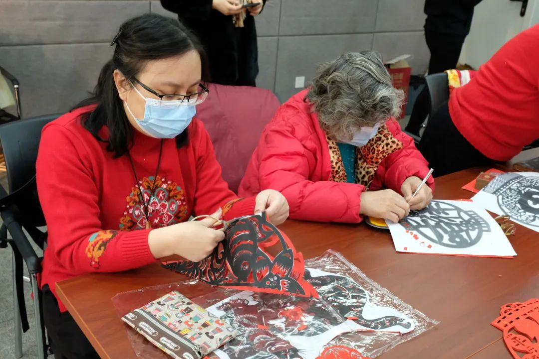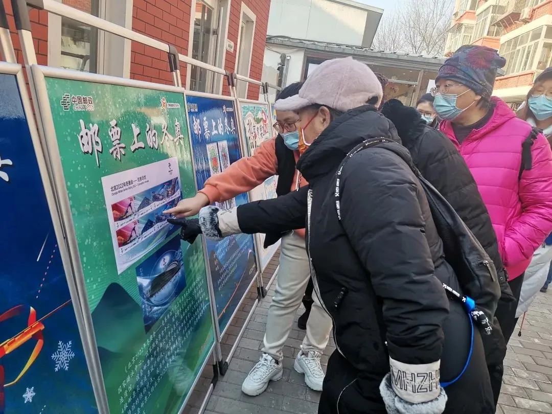 在赏邮票话冬奥环节,工作人员以邮票为载体,借助中国重返国际奥委会纪念、冬奥会徽、雪上运动、竞赛场馆等一枚枚北京冬奥会相关题材的邮票,打开“冬奥记忆”,为大家讲述冬奥会的历史和文化故事。一张张、一幅幅涉及冬奥比赛、冬奥吉祥物、热盼冬奥等内容的作品栩栩如生,吸引来往居民驻足观看。八角街道的老街坊将冬奥元素融入传统文化艺术,创作出一系列冬奥主题作品,在普及冬奥知识的同时,让居民感受文化艺术的魅力。