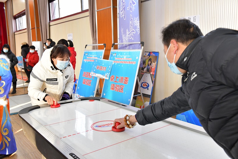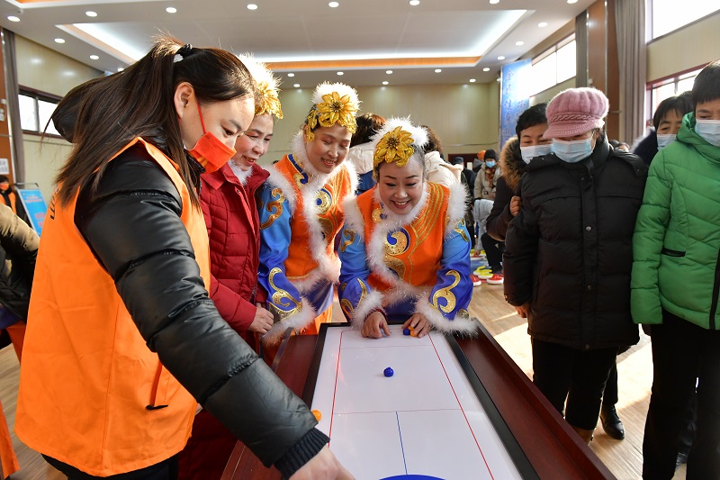 活动采用“冰雪项目体验+游园会”形式,邀请广大冰雪爱好者参与到项目互动、趣味竞技中,体验冰雪运动的乐趣。活动上,念头社区居民们为冬奥唱响赞歌《我们北京见》;马池口镇城市协管员们带来的舞蹈《一起向未来》,为冬奥欢呼、起舞;亭自庄村舞蹈队也通过壮阔、火热的安塞腰鼓表演表达了对冬奥的美好祝愿。随后,马池口镇各村(社区)的村(居)民代表、政府机关工作人员、学生及企业员工等300余人分批次走进冬奥活动体验场,在教练员的指导下,现场体验冰蹴球、冰壶、冰球射门、桌上冰壶等冰雪趣味活动,享受冬奥运动带来的乐趣。