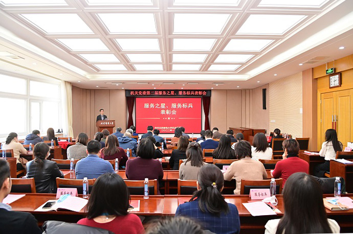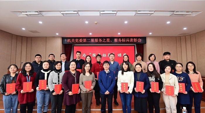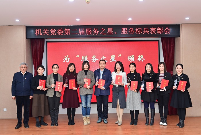 校党委常委、组织部部长党传升宣读了表彰决定,授予王倩莹等11名同志机关“服务之星”荣誉称号,授予马涛等24名同志机关“服务标兵”荣誉称号。吴建伟、苏森分别为服务之星、服务标兵颁奖。汤思源和刘家超分别代表获得表彰的全体同志发言。