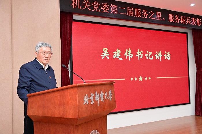 吴建伟代表学校向受到表彰的“服务之星”和“服务标兵”表示祝贺,充分肯定了机关各部门及全体工作人员一年来为学校改革发展作出的贡献和取得的成绩。吴建伟指出,机关是学校运转的中枢,各部门管理服务水平是学校治理能力和治理水平的重要体现。
