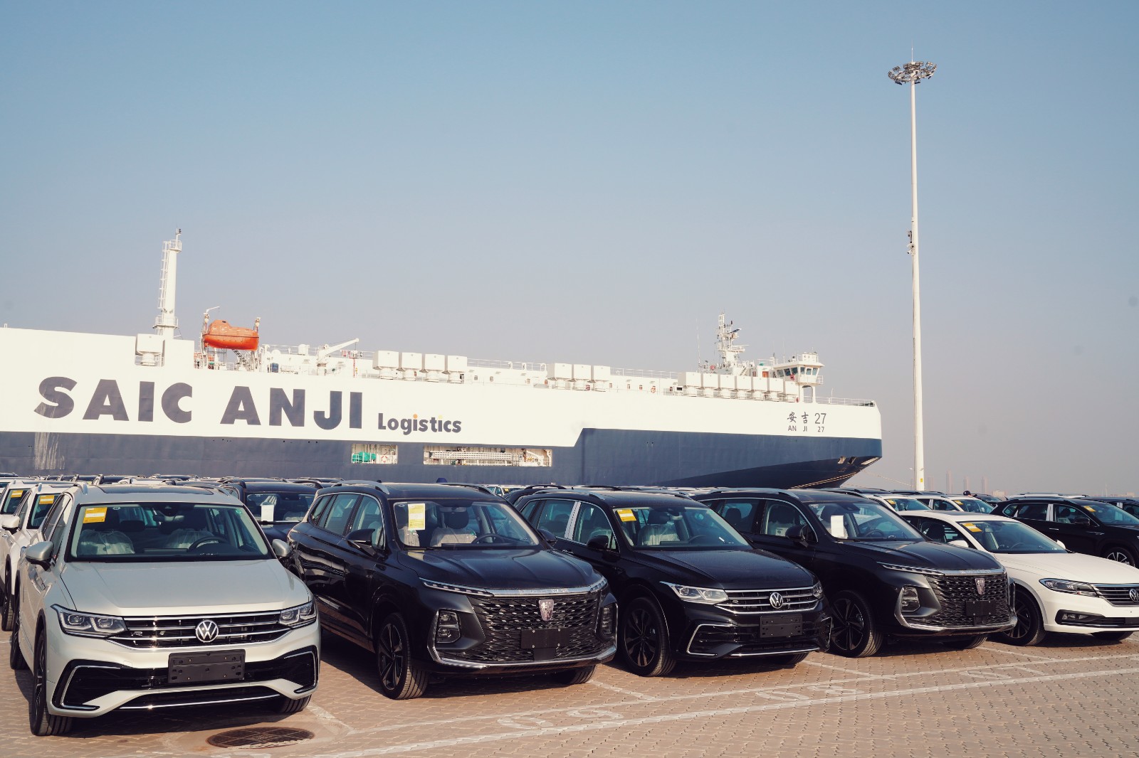 1月14日中午,天津港海嘉滚装码头15号泊位上,迎来第一条船舶作业,“安吉27”轮233辆汽车开始接卸作业,标志着天津港又一滚装码头正式投产运营。