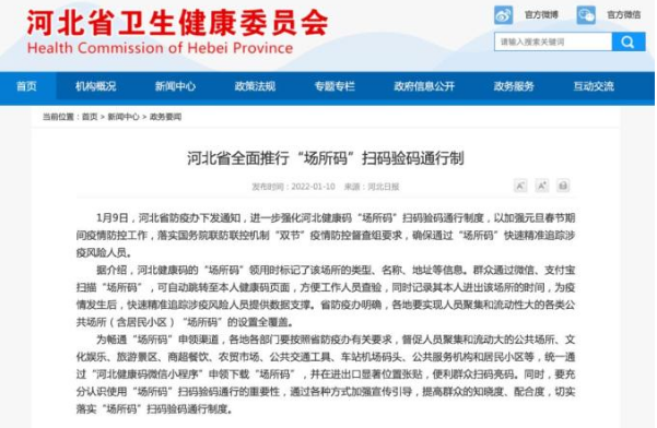 省防疫办下发通知,进一步强化河北健康码“场所码”扫码验码通行制度。