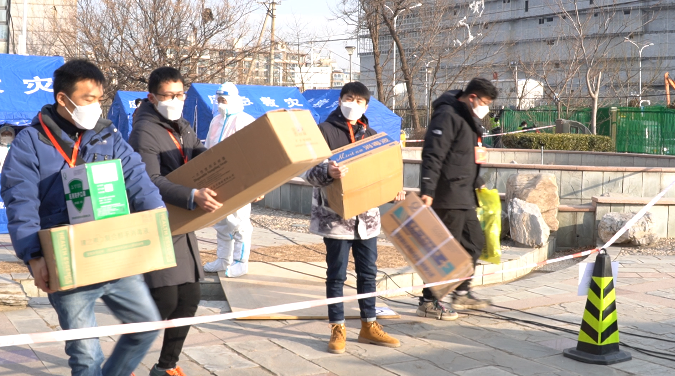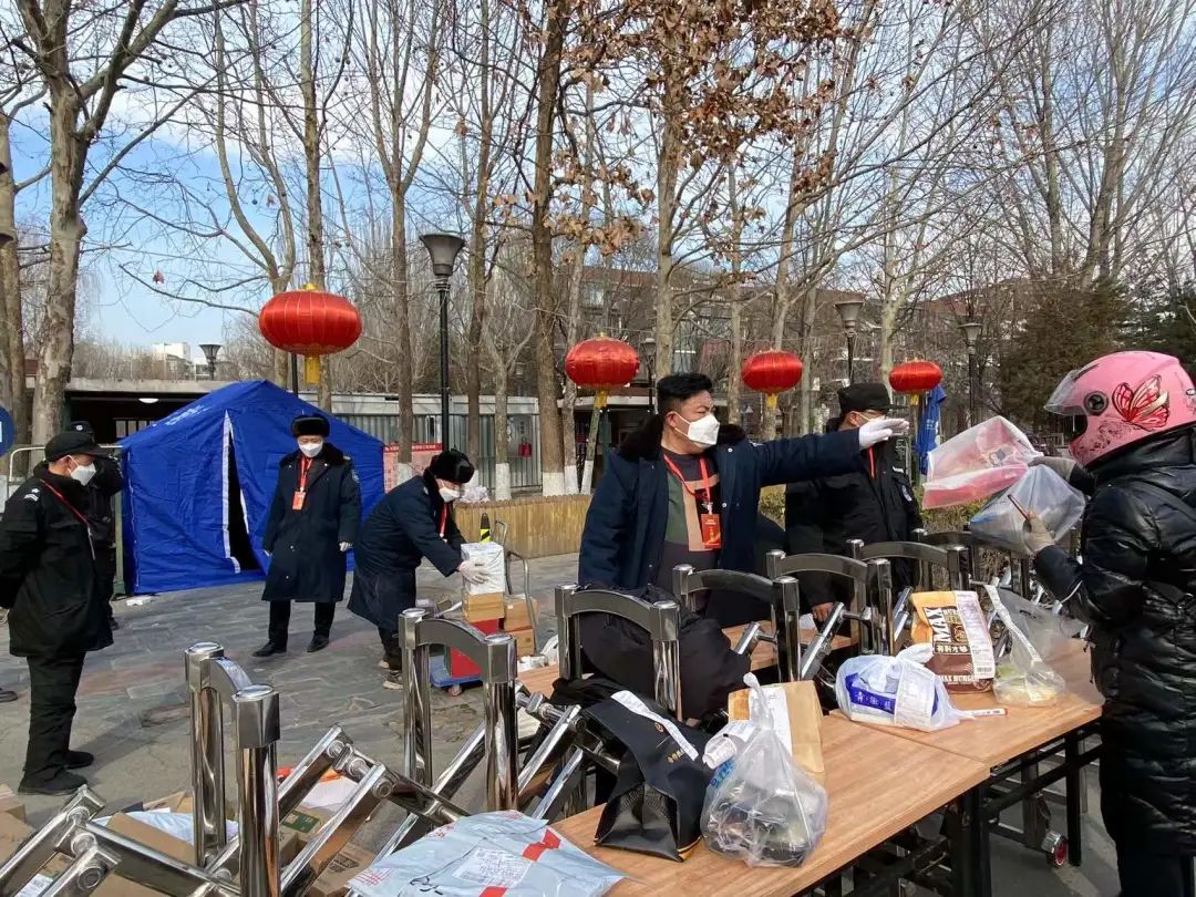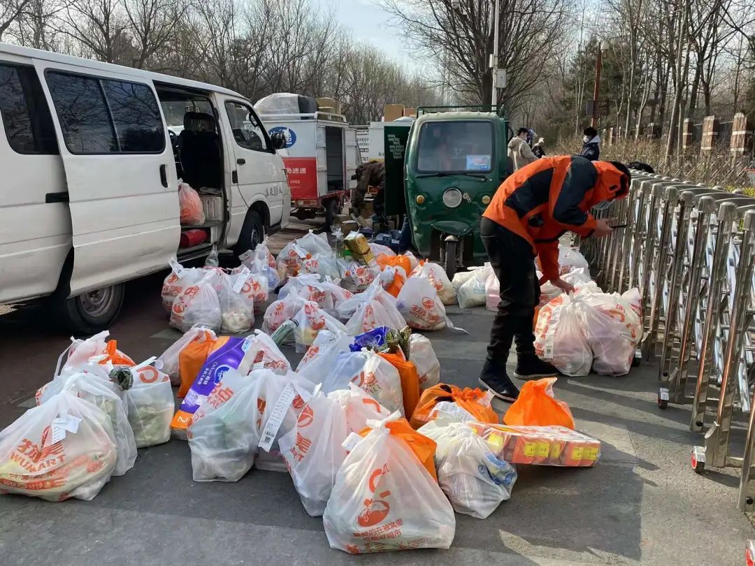 由于小区临时封闭,外卖、快递、亲朋好友送来的生活保障物品只能放到门口。为保障群众正常生活需求,马连洼街道机关、百旺茉莉园社区、志愿者迅速到位,组建服务保障队,做好居民生活必需品保供、消杀等工作。