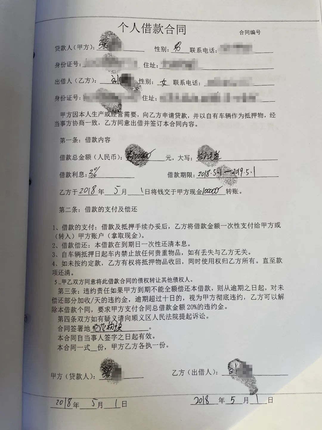 2018年5月1日,张某从刘某处借得10万元,并以自己名下的轿车作抵押,二人签订了《个人借款合同》《车辆抵押合同》《车辆买卖合同》,但签订上述合同时,贷款人、抵押权人、买方均为空白。由于二人相识且张某曾经从刘某处借过款,出于信任,刘某并未在意,于是签下了这份“空白合同”。2019年6月28日,张某将上述借款清偿完毕。