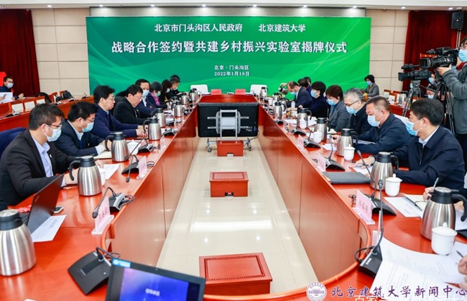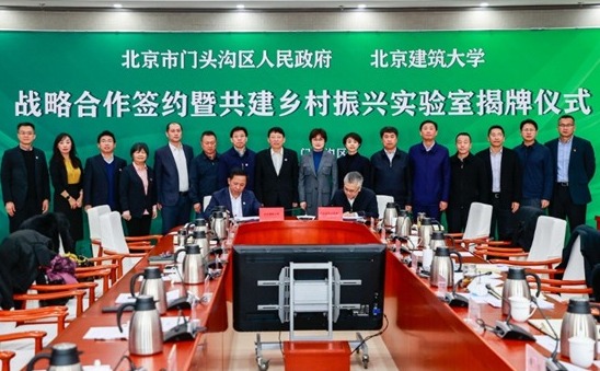会上,北建大党委副书记、校长张大玉发布《北京建筑大学服务门头沟乡村振兴行动方案》,王震和黄刚分别发言。校地双方签署战略合作协议,“北京建筑大学-门头沟区乡村振兴实验室”“北京建筑大学乡村振兴研究与实践基地”正式揭牌成立。