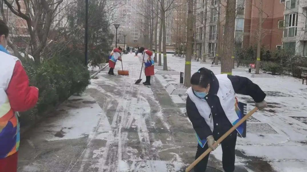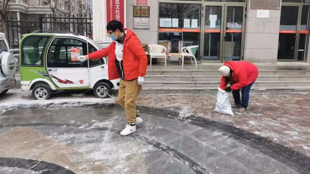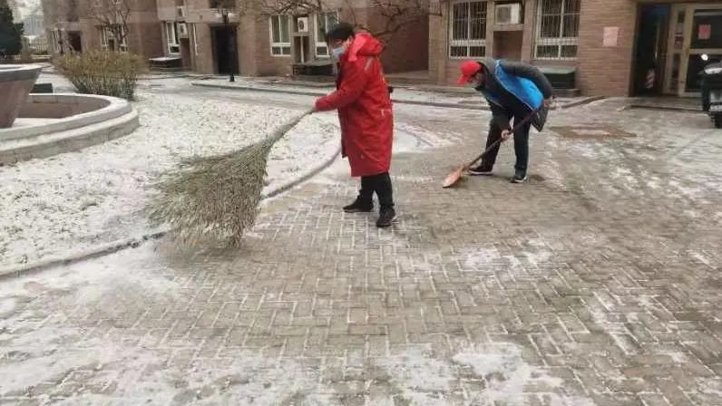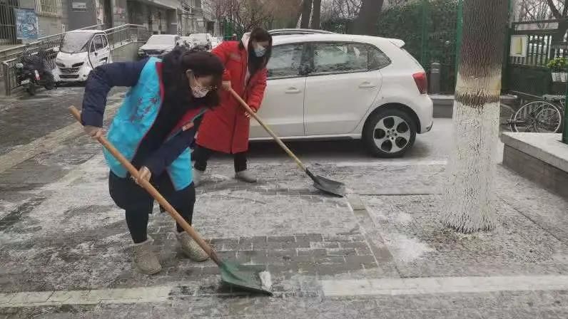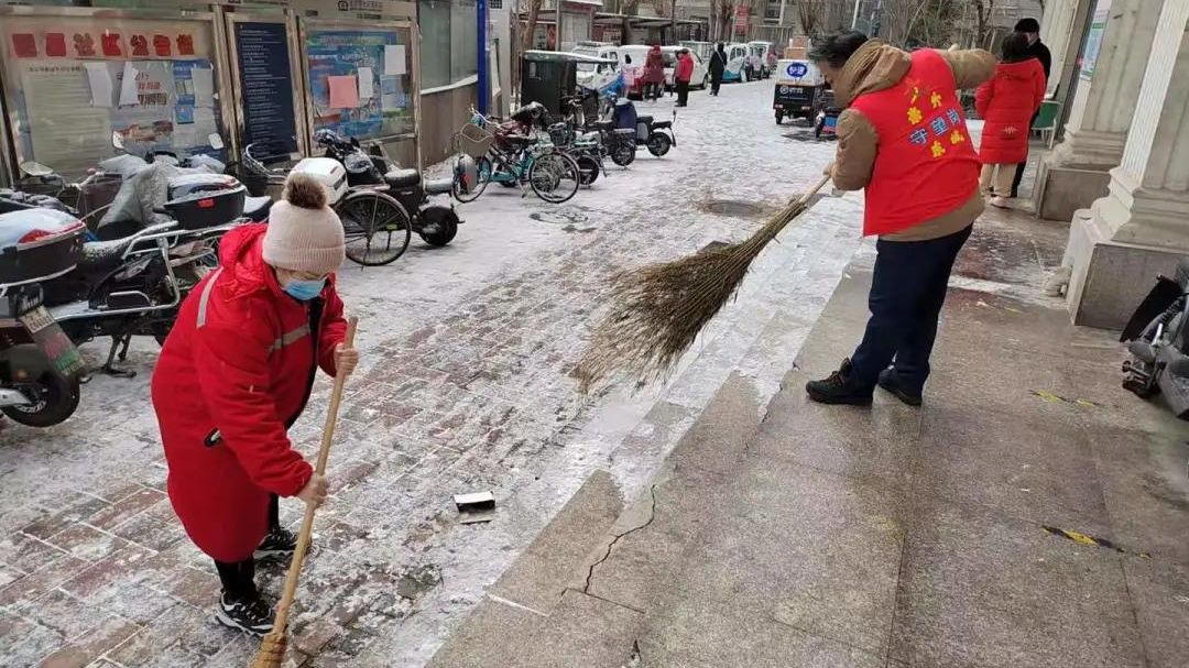 从早上开始,各社区的党员、工作人员、志愿者们就带上除雪铲、笤帚忙碌起来,来到单元门前、楼梯口、社区主要街巷,仔细清理积雪和冰碴,投入到扫雪大军中。