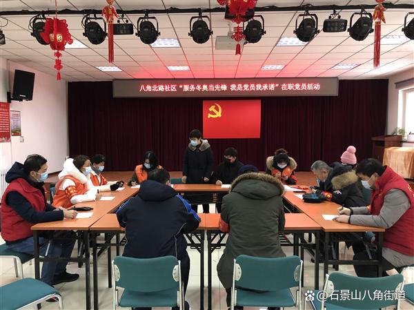 八角北路社区、八角北里社区、景阳东街第三社区、体育场西街社区开展“我是党员我承诺”实践活动,组织党员签订承诺书,动员大家主动履职有效发挥作用,以主动担当的实际行动,践行共产党员的初心和使命,全力做好北京2022年冬奥会和冬残奥会服务保障工作,让党的旗帜高高飘扬在冬奥服务保障第一线。
