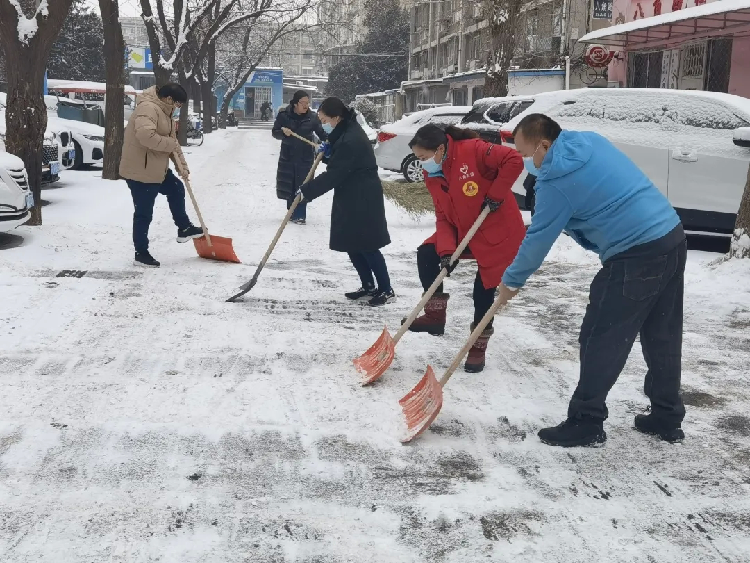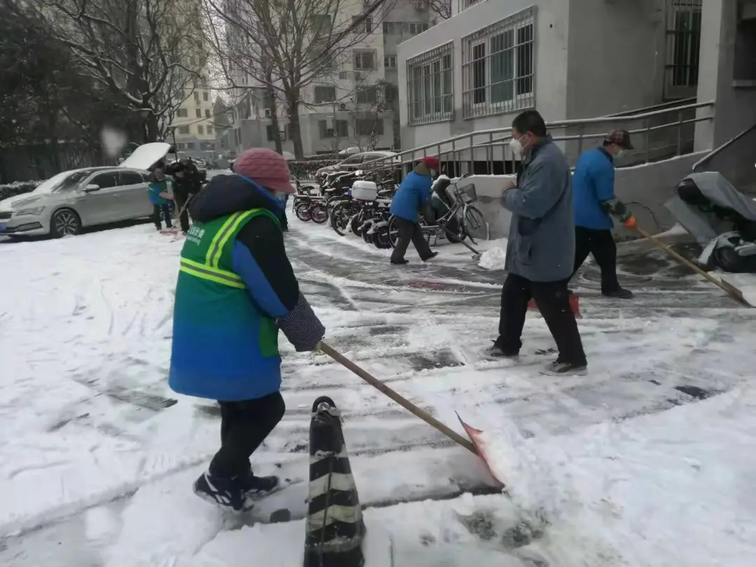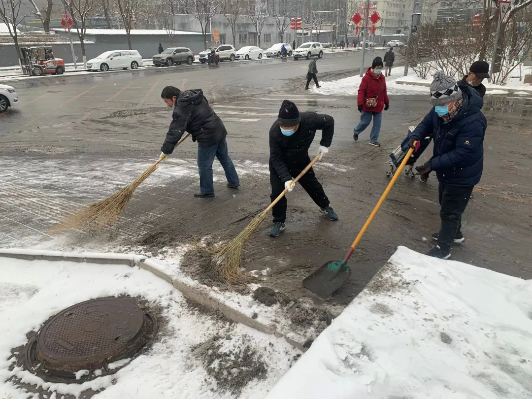 老山街道全面部署,启动应对恶劣天气应急预案,多措并举加大管控力度,全力做好此次铲冰扫雪保障工作。老山东里南社区党委、老山东里社区党委、老山西里社区党委、高能所社区党委等12个社区充分发动人员力量团结协作清扫积雪,对社区的主干道、居民楼周围及居民活动场所撒融雪剂、清扫积雪、铲除结冰,为广大居民群众出行提供安全保障。