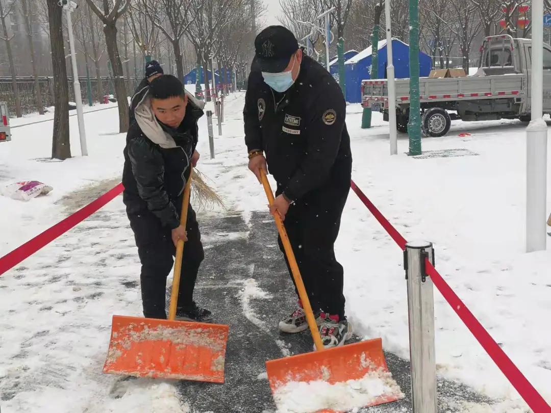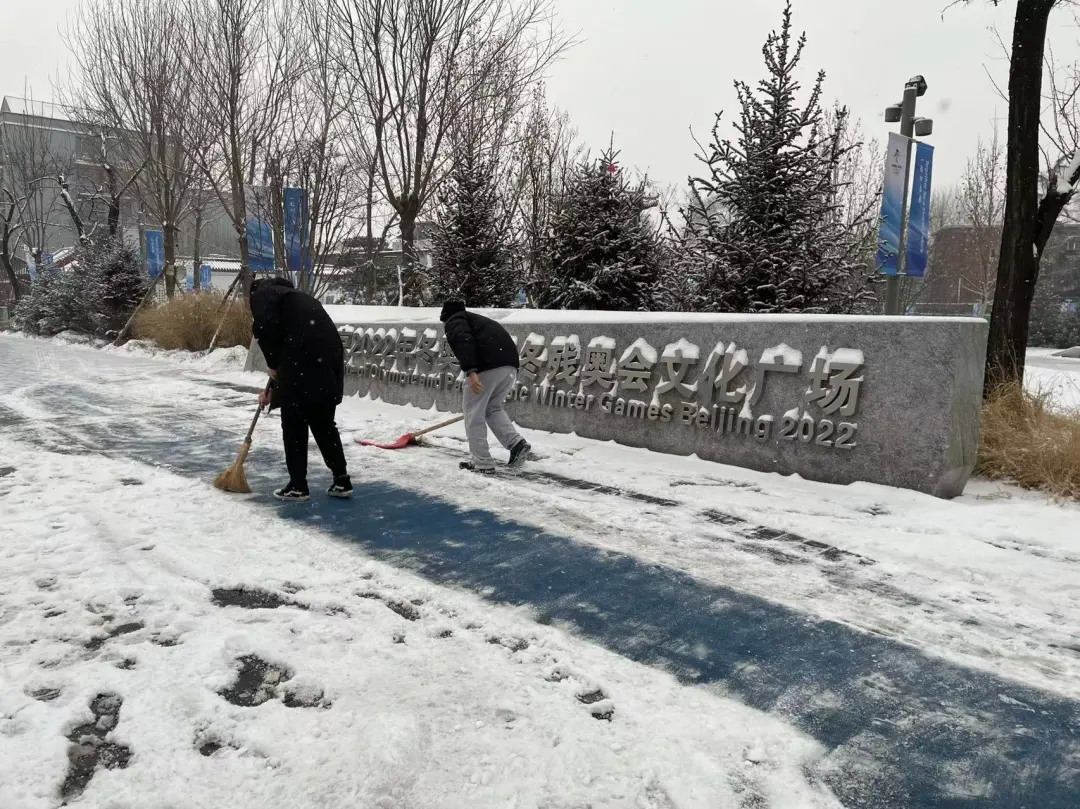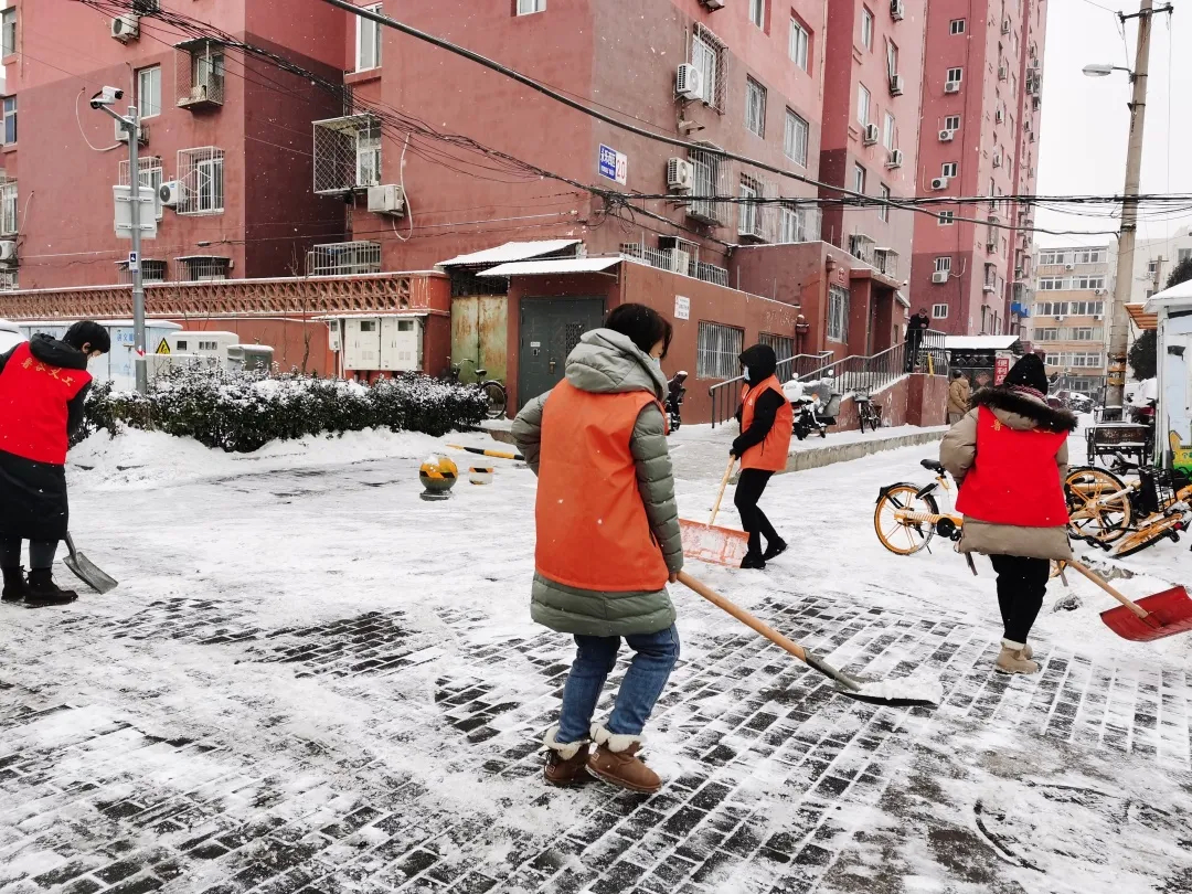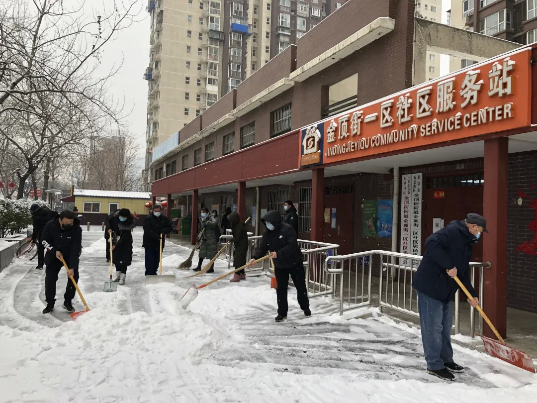 1月22日,北京持续降雪,漫天飞雪致使街道各社区内积雪堆积、道路湿滑。为保障居民安全出行,石景山区各街道、单位及时启动扫雪除冰预案,发动各社区工作人员、老街坊志愿者开展扫雪铲冰行动。各部门、各社区按照预案要求,快速行动重点抓好背街小巷、门前三包和小区内的铲冰扫雪工作,确保百姓出门脚下不沾雪、不打滑。
