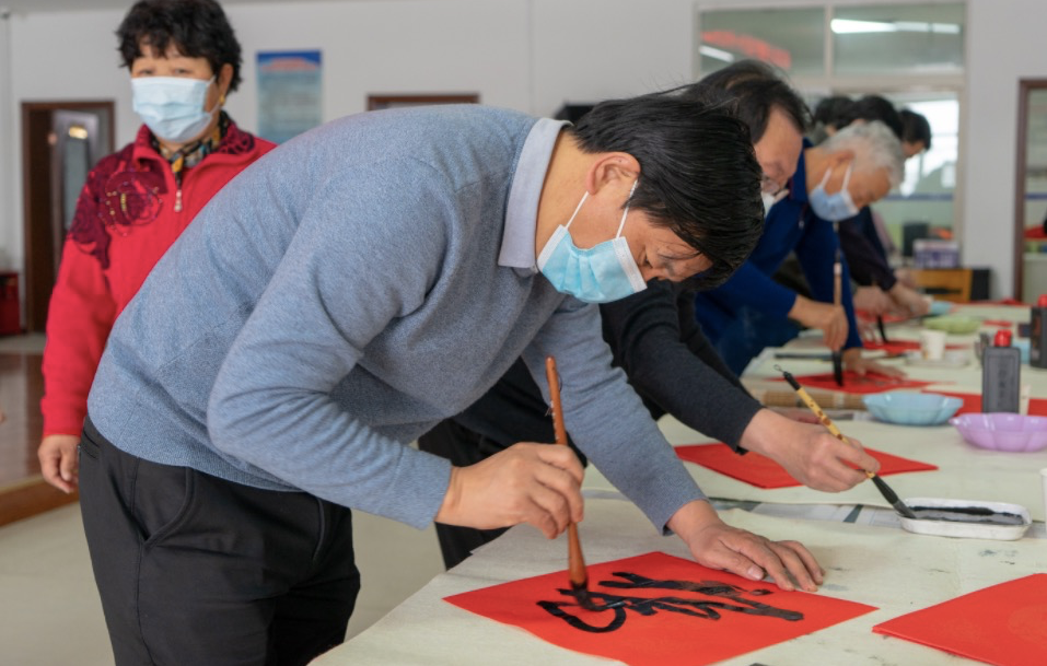 来自文化、路政和教委等系统的8位书法家与村“两委”班子进行交流座谈,并现场为乡亲义务书写春联福字,提前送上新春祝福。
