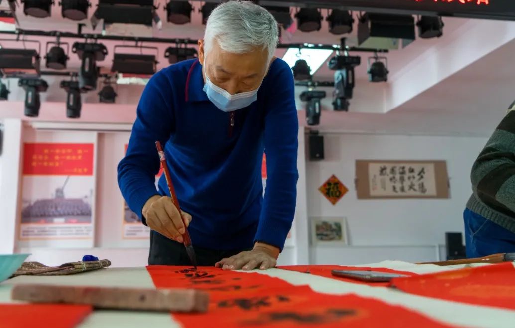 书法家们尽情挥毫泼墨、笔走龙蛇,将内心的温暖融入到春联中。一句句寓意吉祥的祝福语,一张张力透纸背的“福”字,让现场变得年味儿十足。