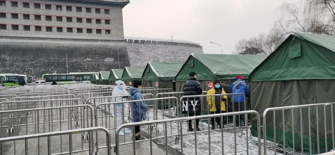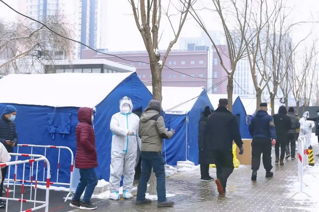 当天,在各个核酸检测点位、医务人员、街道干部、社区工作者和志愿者们冒着严寒方便、高效、有序地,开展核酸检测服务工作,毫不放松严格落实各项疫情防控举措,为辖区群众筑牢安全防线。
