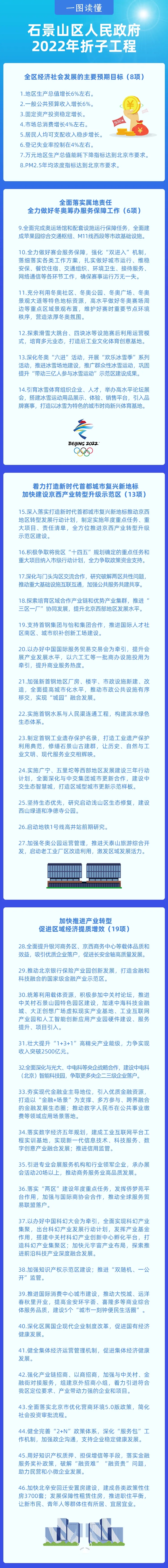 近日,石景山区政府网站发布了《北京市石景山区人民政府关于印发2022年折子工程的通知》,包括九个方面121项具体任务。