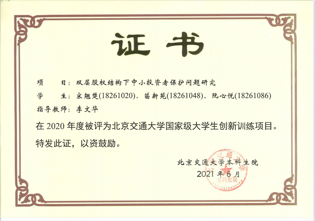 一年时间,从校级、北京市级、再到国家级,从上百篇文献、几万字研究报告到最终论文定稿。最终,她们的项目被评为国家级,宋翘楚也以第一作者身份将论文发表于CSSCI集刊《经济法学评论》上。
