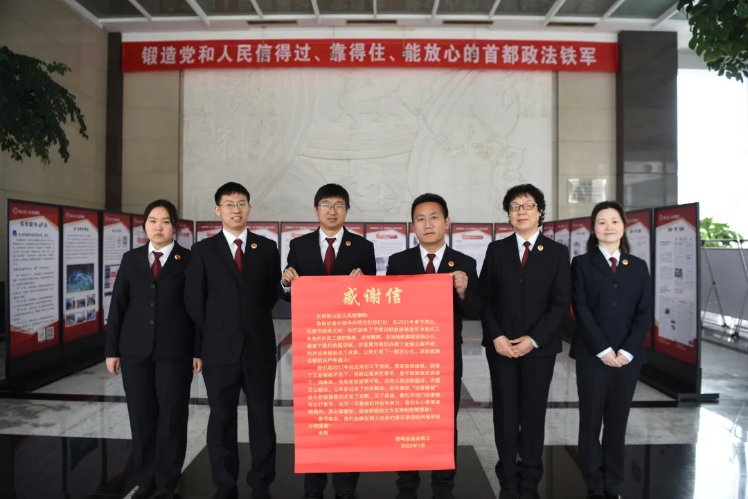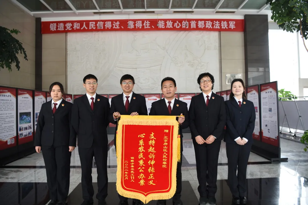 近日,河北省邯郸市涉县农民工11人向房山区检察院送来“心系农民秉公办案 支持起诉伸张正义”的锦旗和感谢信,对房山区检察院办理支持起诉案件协助农民工讨薪,表示真诚感谢。