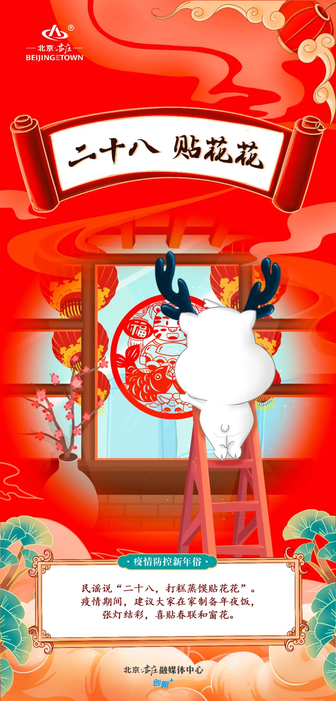 二十八,把面发,贴年画 蒸枣花,在家备制年夜饭,共抗疫情新年欢。