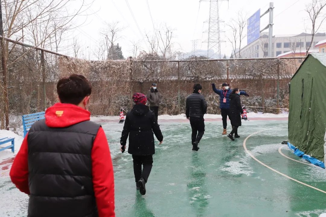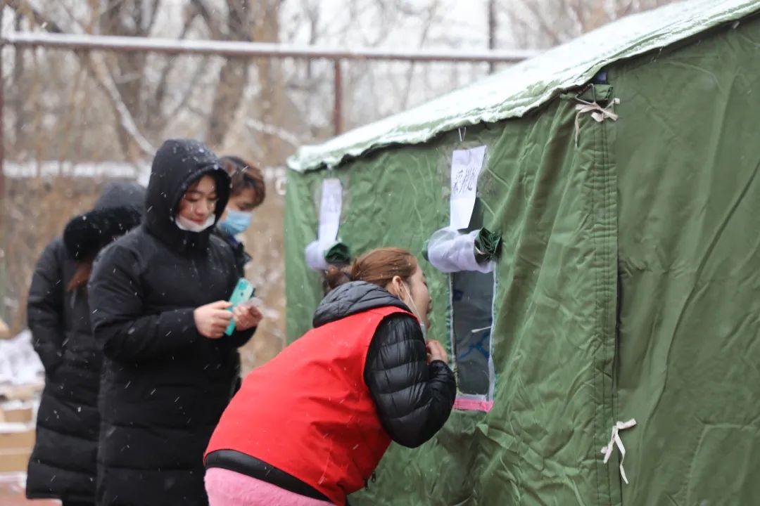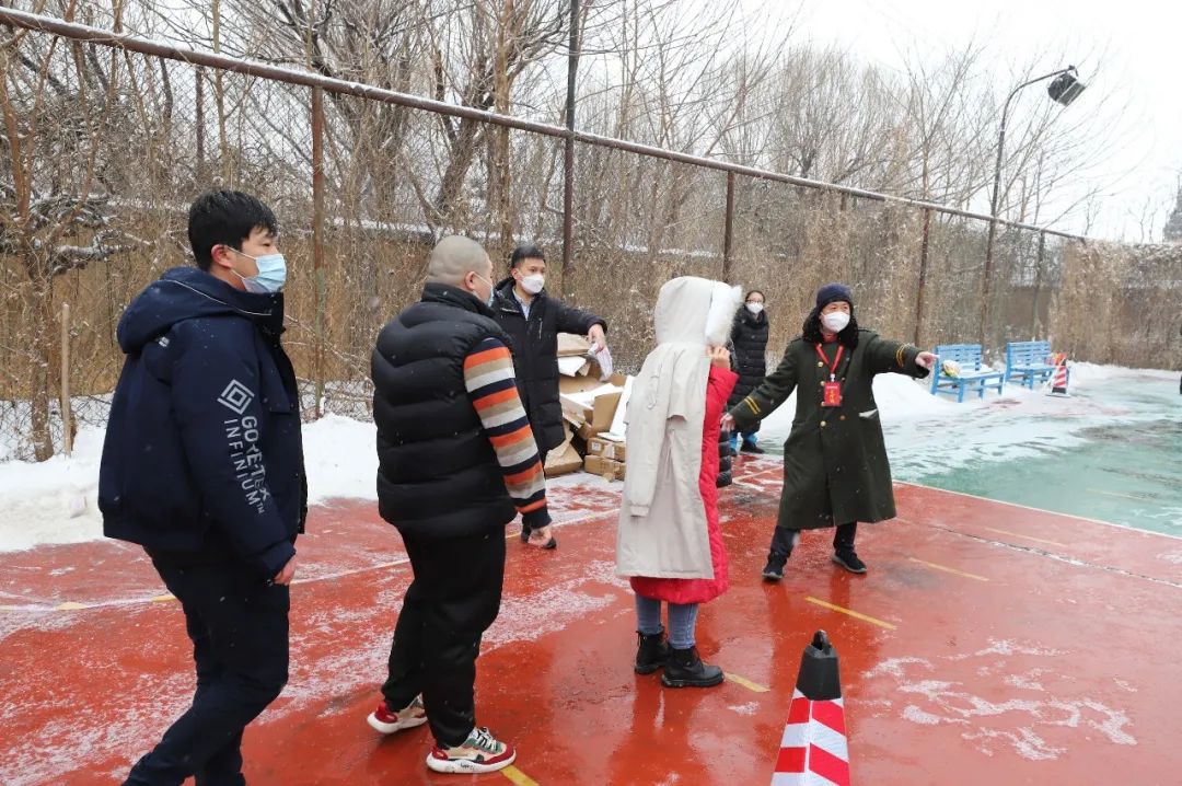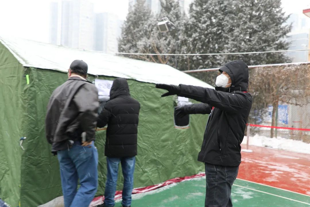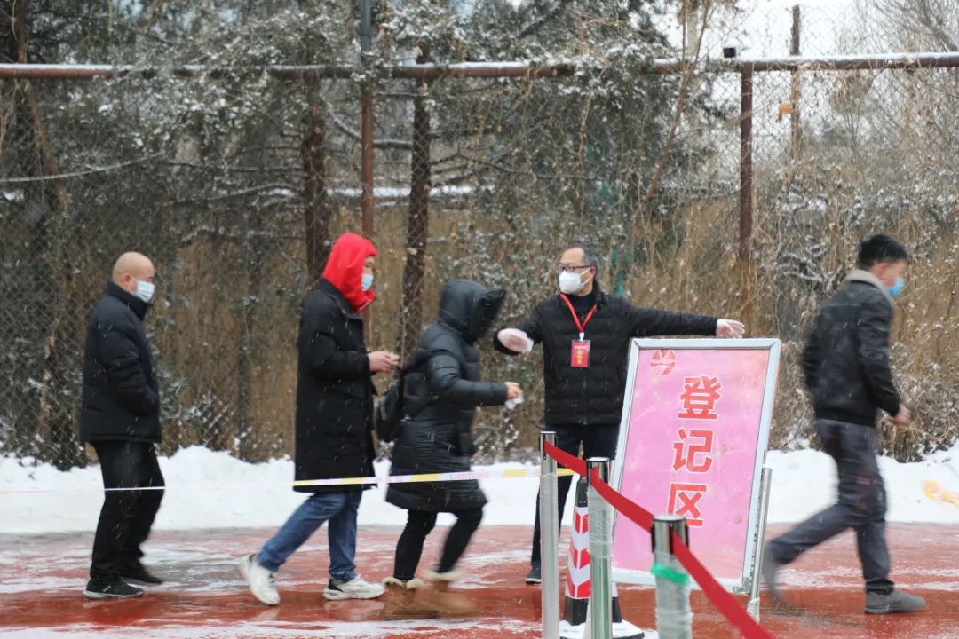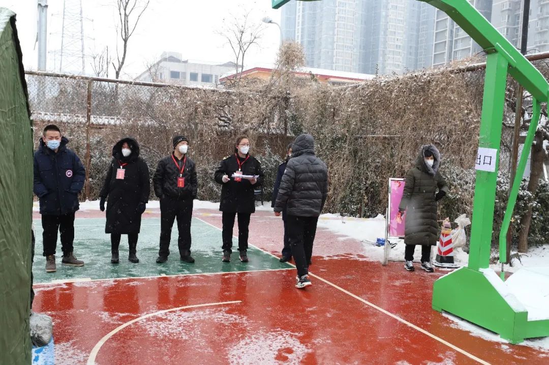 上午九点,各项工作准备就绪,恒川公寓临时核酸检测点正式启用,来自辖区重点业态从业人员按照通知要求,在地区市场监督管理所的组织下,分批有序前往检测点采样。“往这边走、排好队”“请出示身份证、录入信息”“不要着急,等一下”“请排到这边来检测。”“检测完了,从这边门出去”,在地区处级领导班子成员的组织协调和机关干部、太阳宫社区卫生服务中心、新纪开发公司、乡联社、乡应急队、保安的综合保障下,核酸检测现场秩序井然。大雪纷飞,路面积雪,为保障核酸检测点外围交通环境秩序安全,地区还组织交通协管员、环境应急队对周边的道路交通环境进行保障。