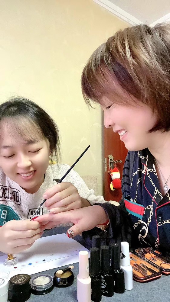 周心怡说:“妈妈和爸爸含辛茹苦把我培养成才不容易,我要用美装扮妈妈,用爱报答妈妈。记得小时候妈妈对我的爱是无处不在,当我考试成绩低时,妈妈的爱藏在严厉的批评里;当我成绩优异时,妈妈的爱藏在赞许的话语里;当我睡觉忘记盖被时,妈妈的爱藏在温暖的行动里;当我感冒发烧时,妈妈的爱藏在句句关心里……现在我参加工作了,长大成人了,我要报答父母对我的爱。妈妈为我累,爸爸为我活,我要将无私的爱,画成最美的甲指,奉献给妈妈。”(曹丕业)