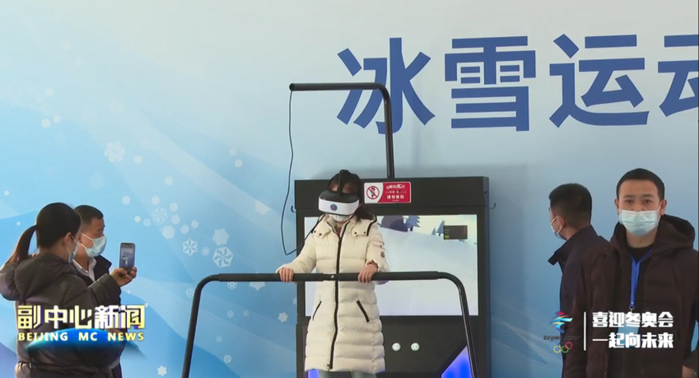 记者孙颖:“我现在位于冬奥文化广场冰雪运动科技体验区,在这里不仅有VR滑雪、旱地滑冰等四项冰雪体育运动,而且整个的体验过程非常的好玩儿,特别有代入感,欢迎屏幕前的您赶紧来到我们的活动现场,和我们一起体验冰雪运动的快乐吧。”