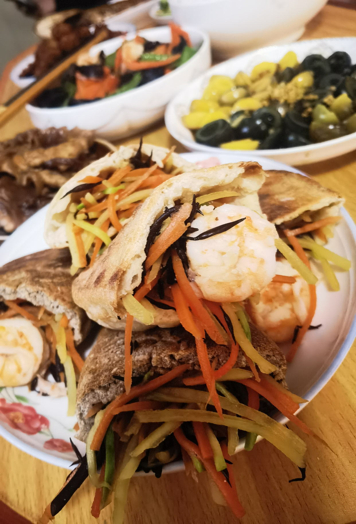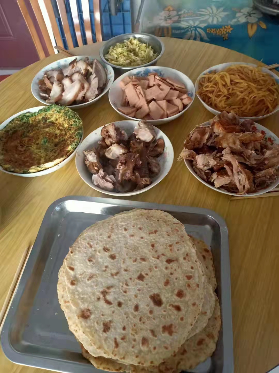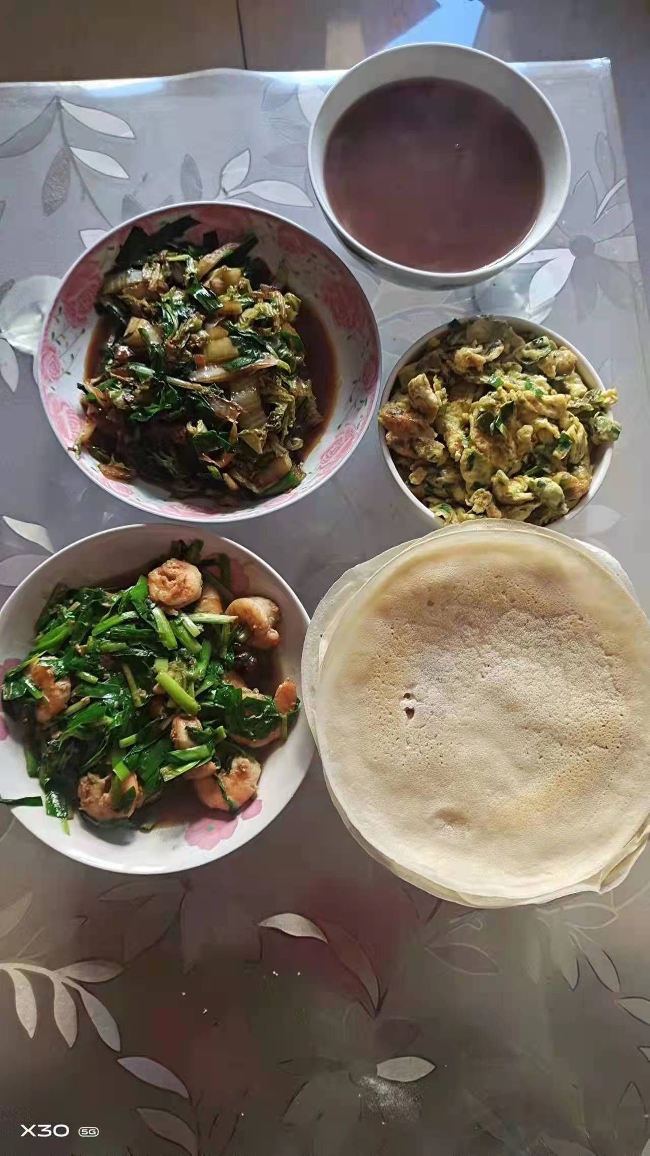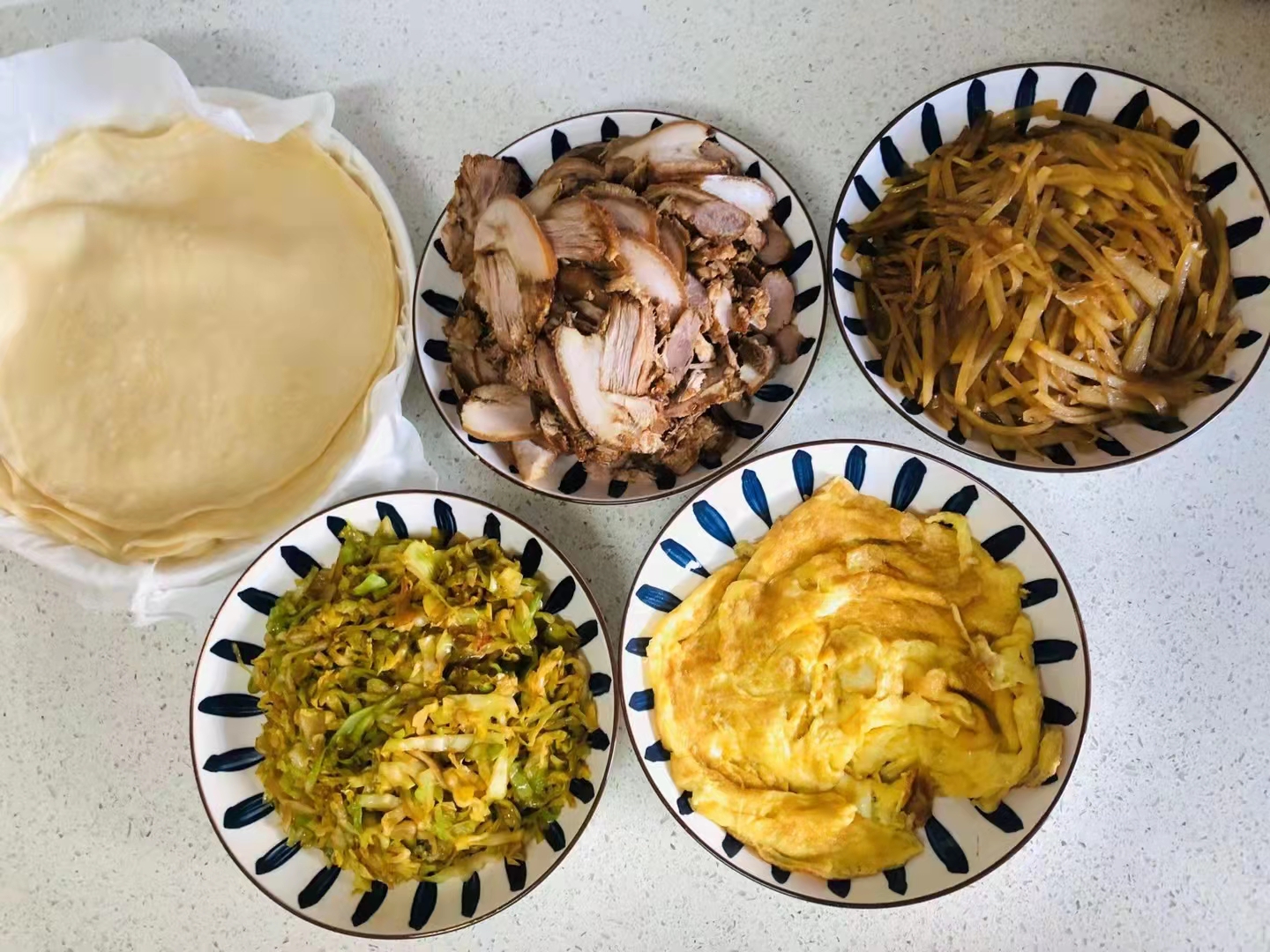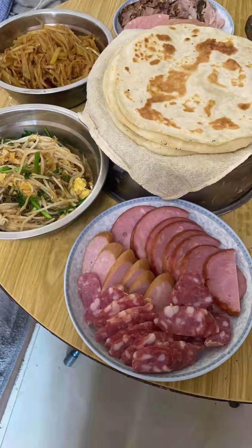 立春少不了吃春饼,也叫“咬春”。豆沙馅、素什锦,居民自制的春饼春卷馅料丰富,饼薄如纸,柔暖劲道,美味势不可挡,隔着屏幕都感受到了浓郁的香味。