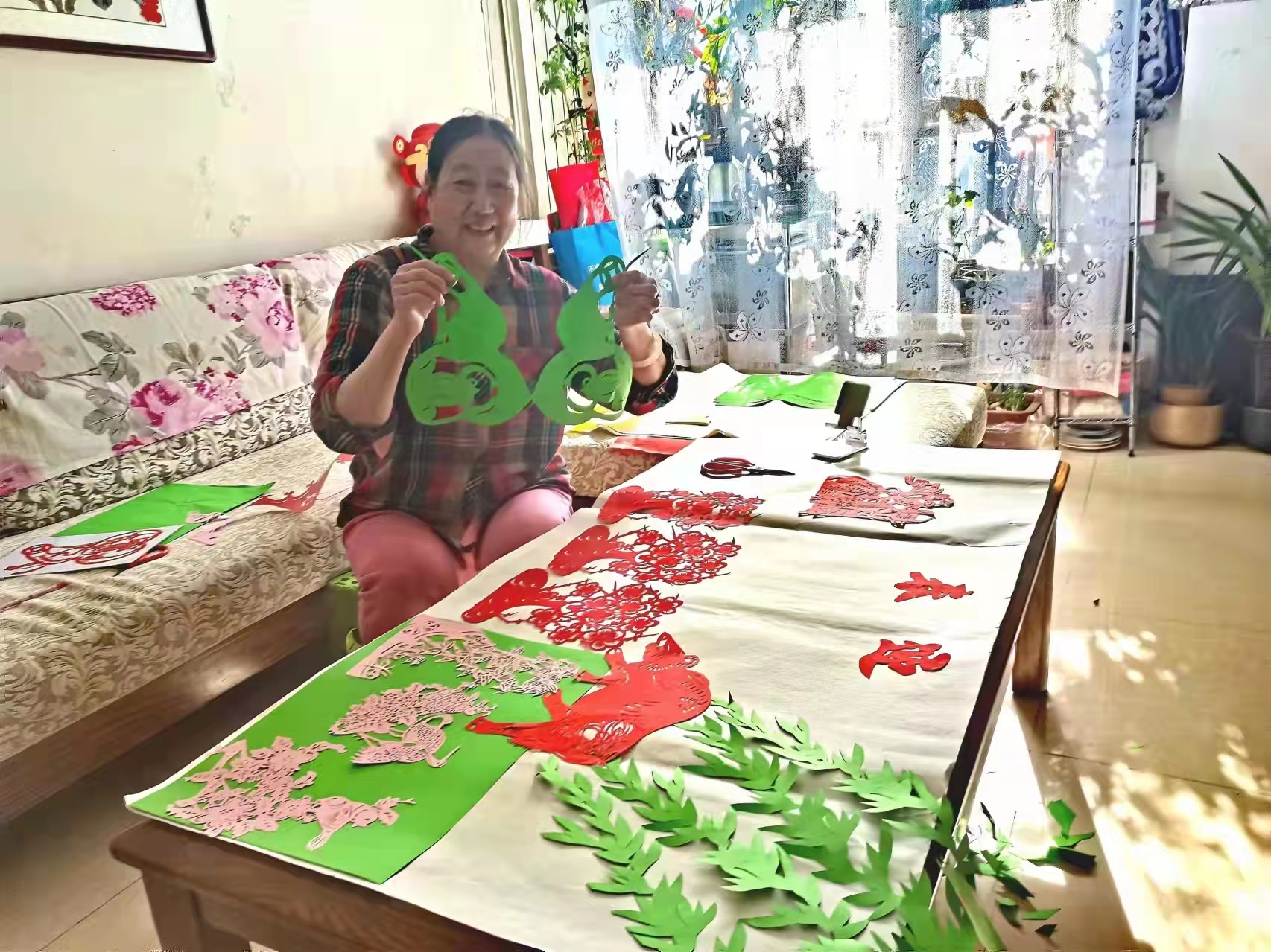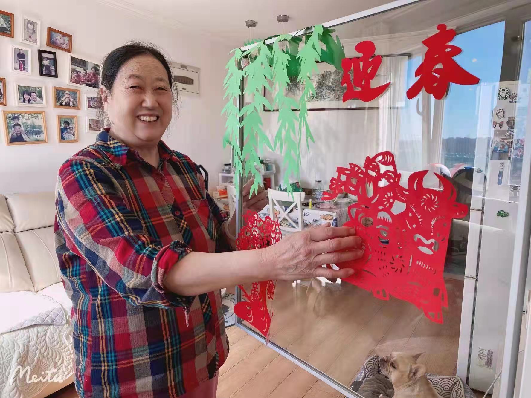 在南苑街道南庭新苑南区社区,居民们正在巧手创作立春剪纸作品。“今天是立春,我剪的是福虎迎春,春暖花开,表达对新春的祝福,为冬奥健儿加油助威!”南苑棚改居民“剪纸达人”赵玉凤,展示着手中的剪纸作品高兴地说。