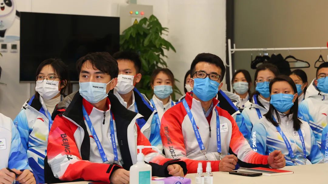 第一天来到五棵松体育中心集中办公,办公用品和工作电脑还未布设好,大家的工作已经热火朝天地展开。陈大鹏拿着手机,在观众坐席和北京冬奥组委的同事连线进行视频会议。“看到我一个人坐在‘超大会议室’里参会,伙伴们用掌声给我鼓励。我知道,不论身处何地,大家都在为着同一个目标而努力。”