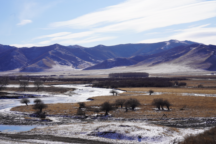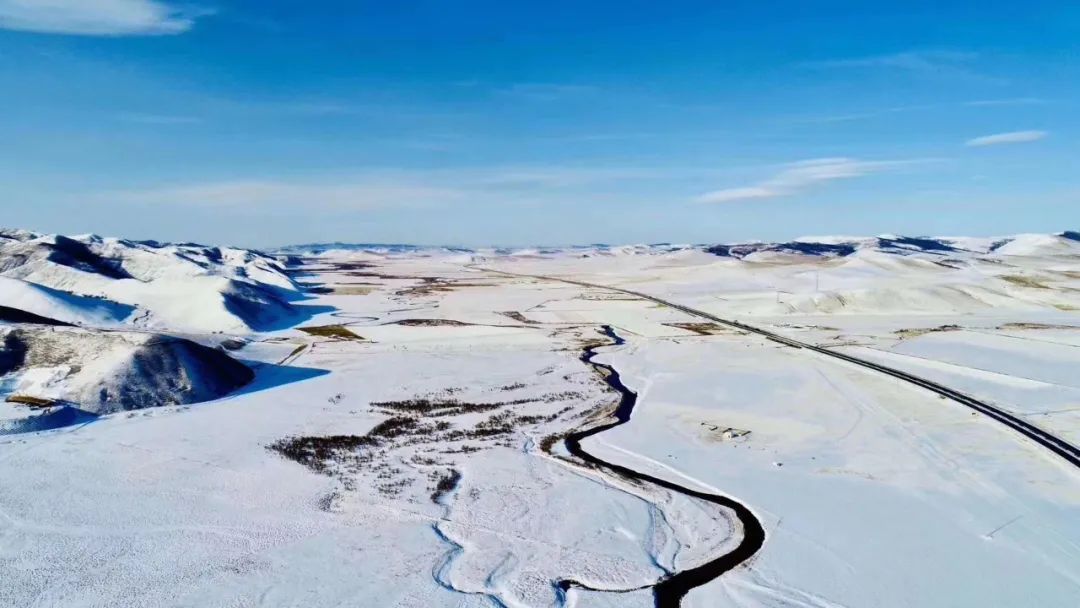冰雪中的乌兰河蜿蜒曲折。