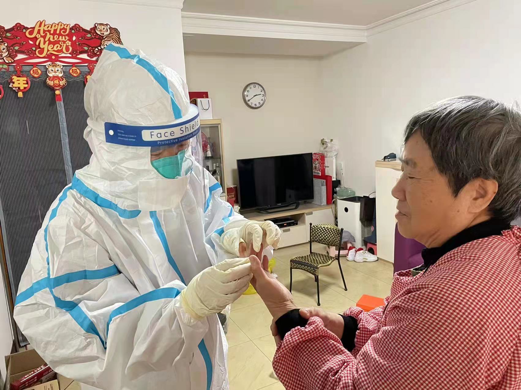 1月29日,艾医生充分考虑居民所需,将开好的药给余女士送到家中,并为余女士进行伤口换药,还为余女士及家人进行了核酸采集。临走时,余女士再三感谢铁营社区卫生服务中心,想民之所想,急民之所急,真真切切一切为民。